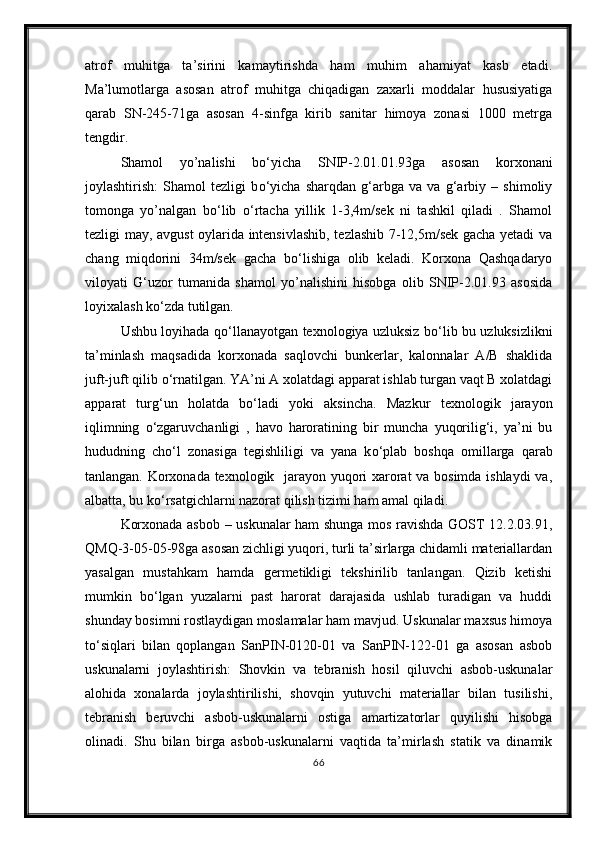 | 2 | Texnologik jarayon tavsifi.............................................................. | 9 |