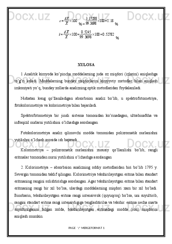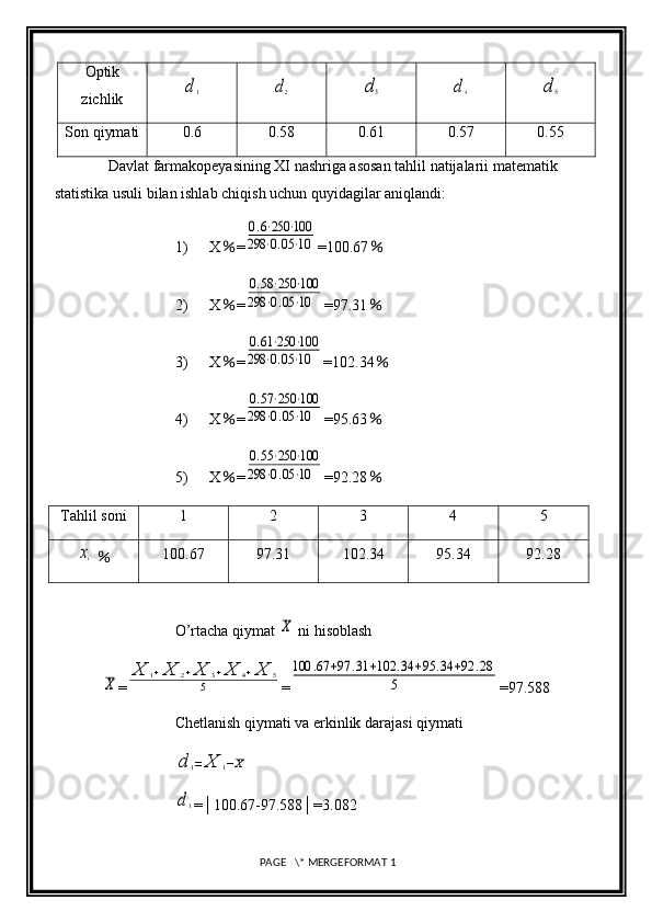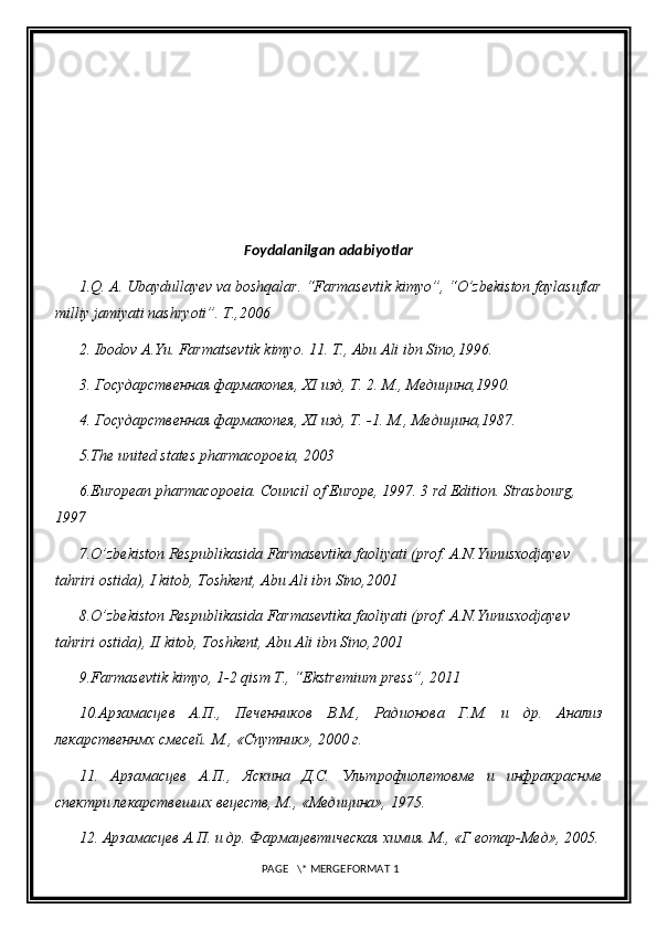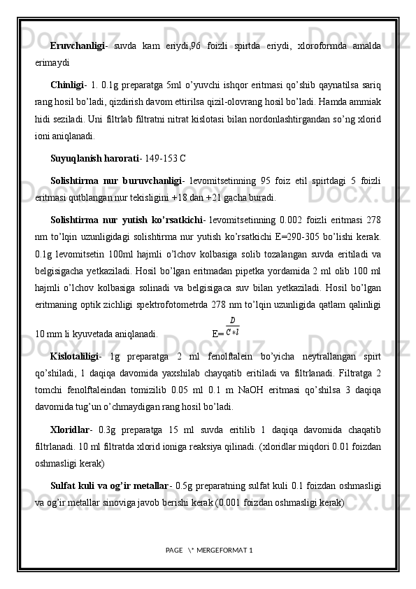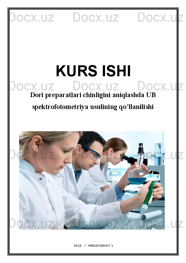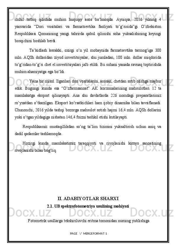 Dori preparatlari chinligini aniqlashda UB spektrofotometriya usulining qo’llanilishi