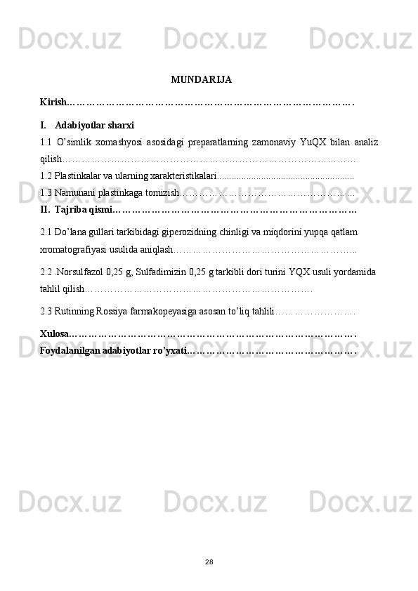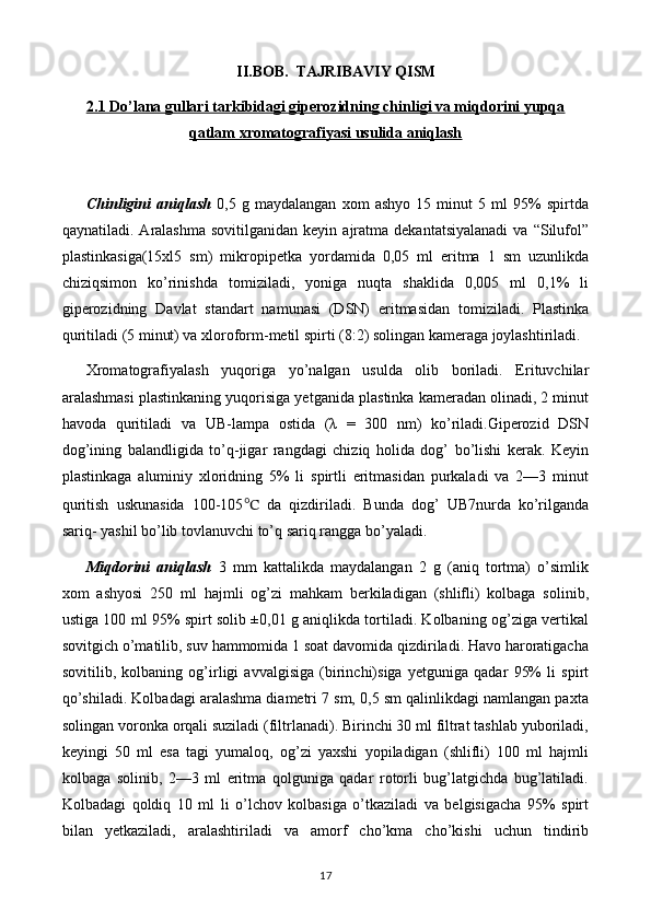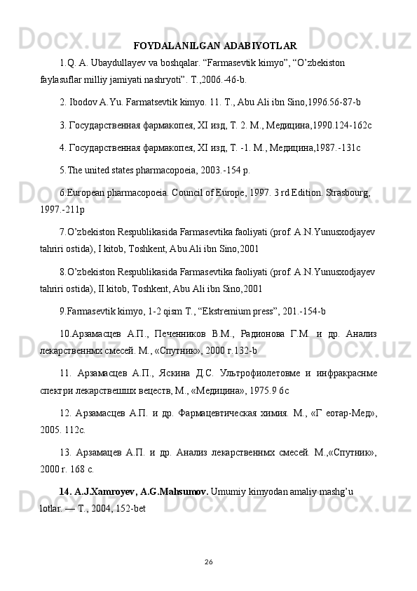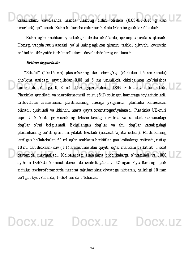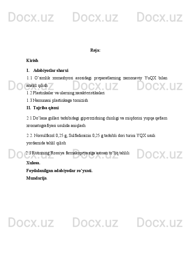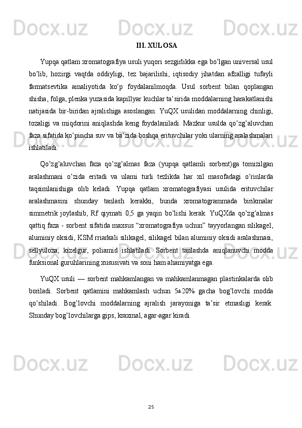 Dori preparatlarining tozaligini aniqlashda YuQX usulining qo’llanilishi