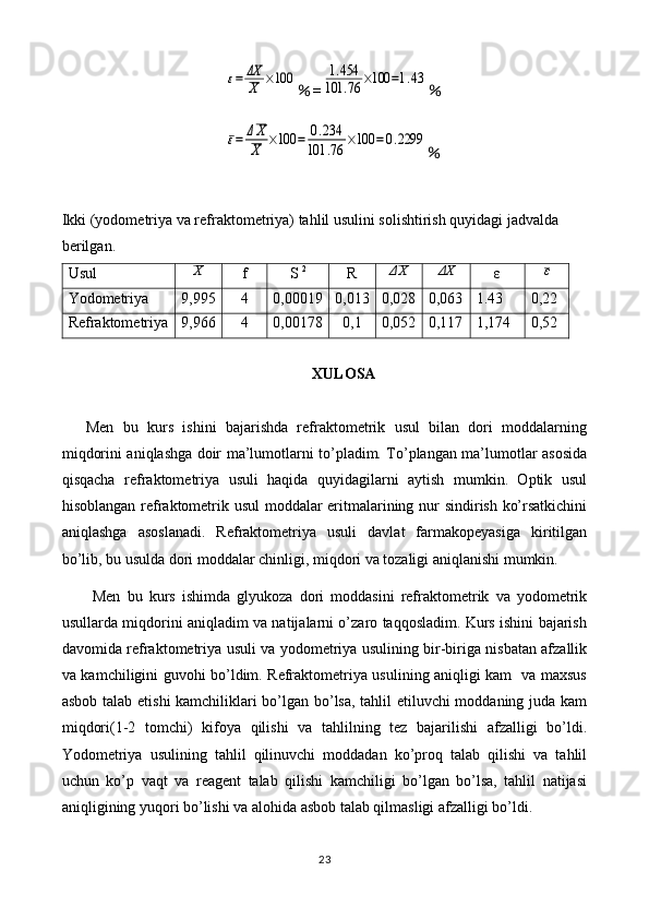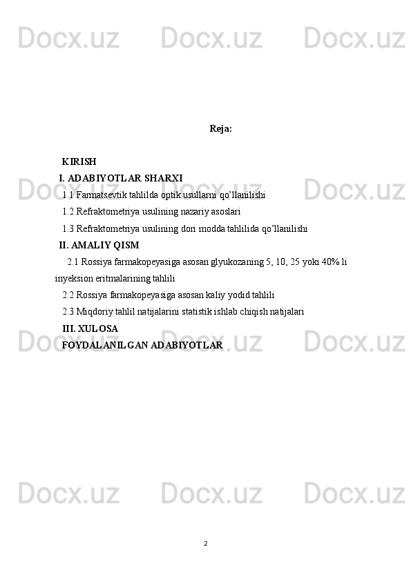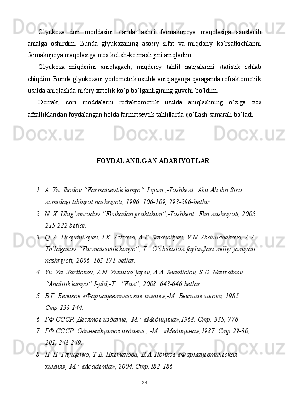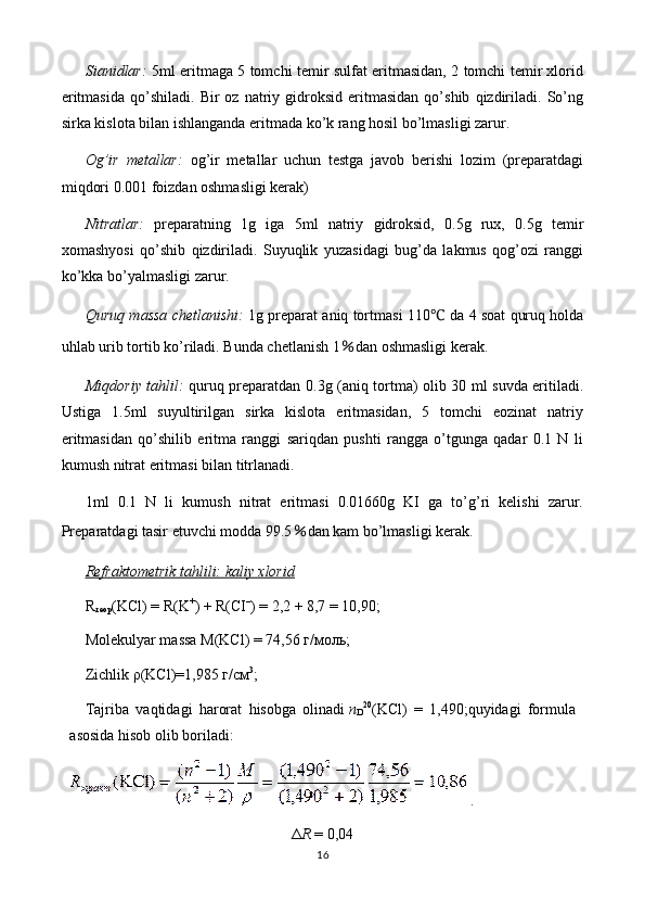 Dori vositalar tahlilida refraktometriya usulini qo’llanilishi