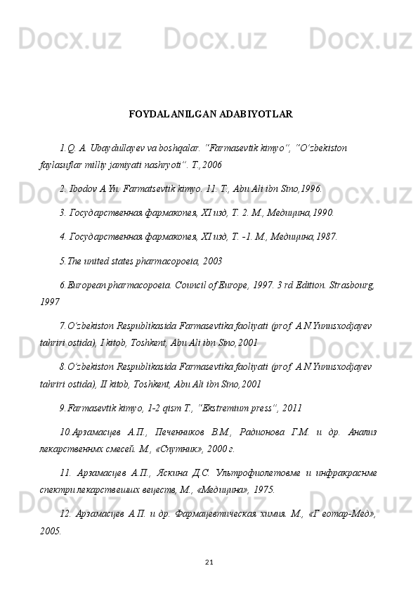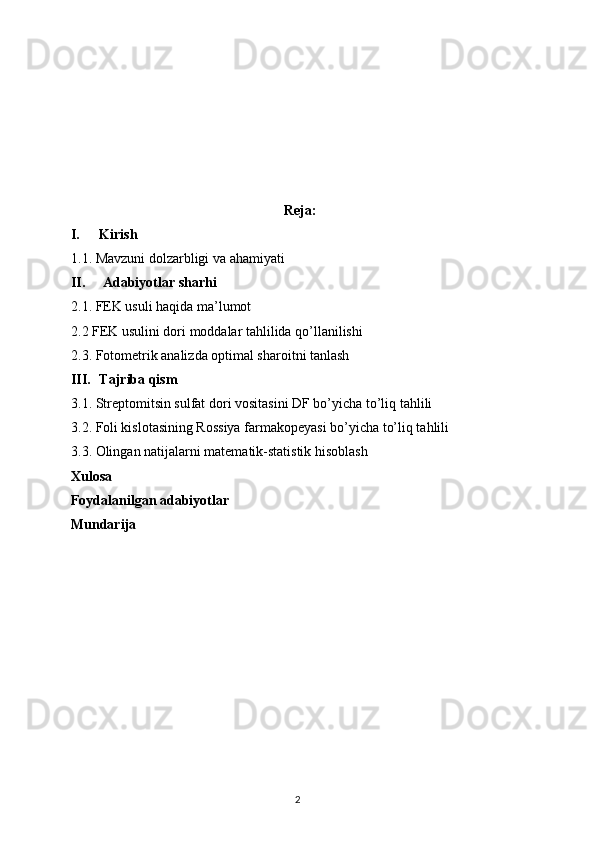 Dori vositalari tahlilida FEK usulining qo’llanilishi