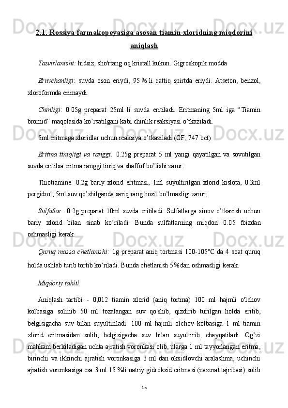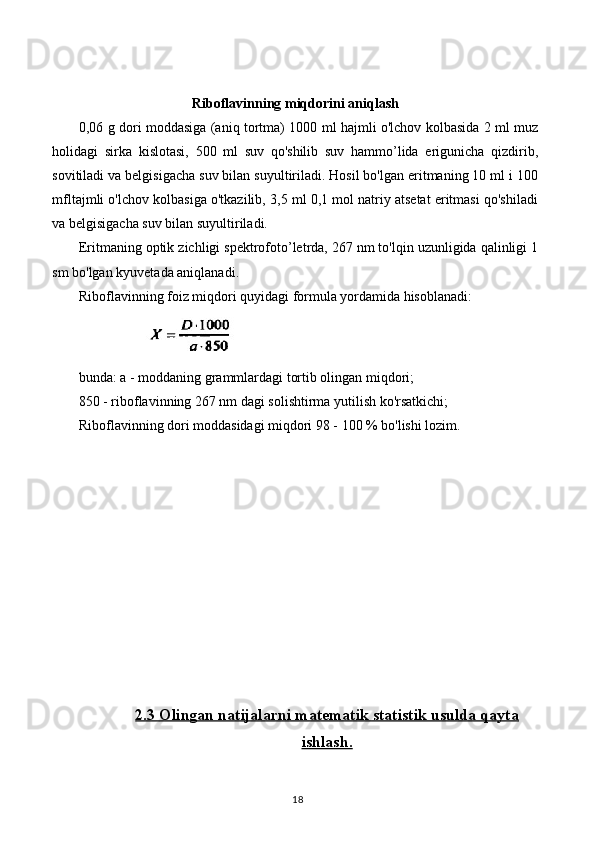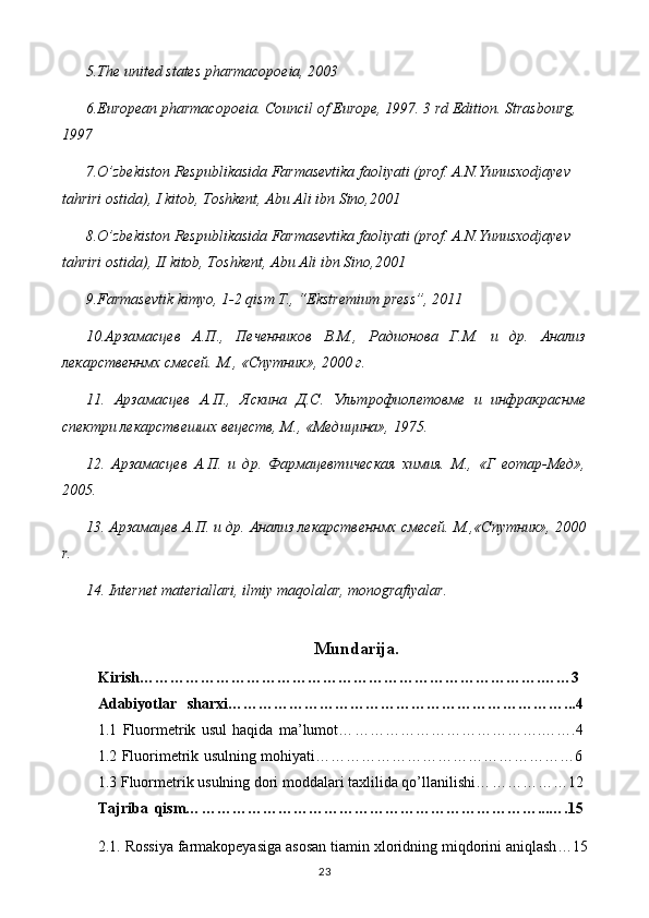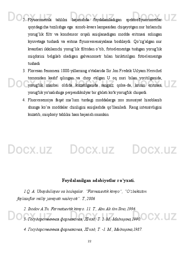 Dori vositalarini taxlilida fluorimetrik usulni qo’llanilishi