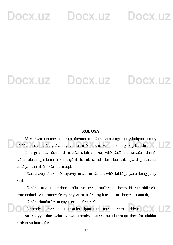 Dori vositasiga qo’yiladigan asosiy talablar