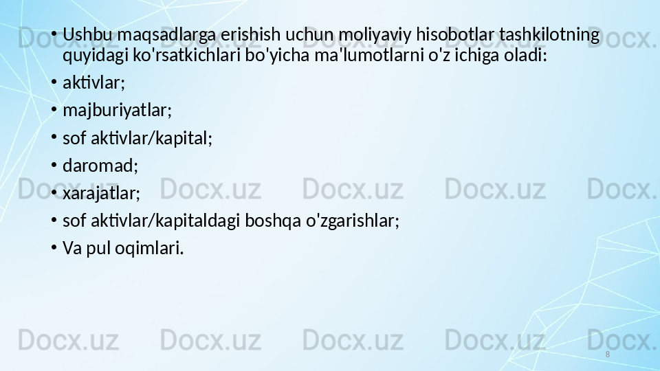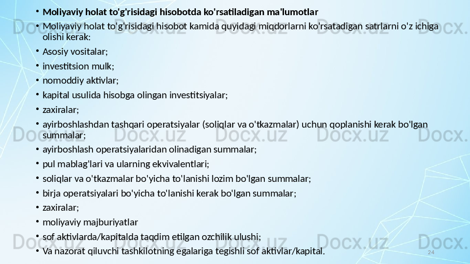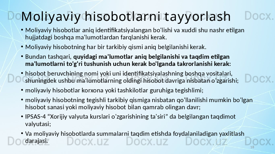 ДСБХХС-1. Молиявий ҳисоботларни тақдим этиш