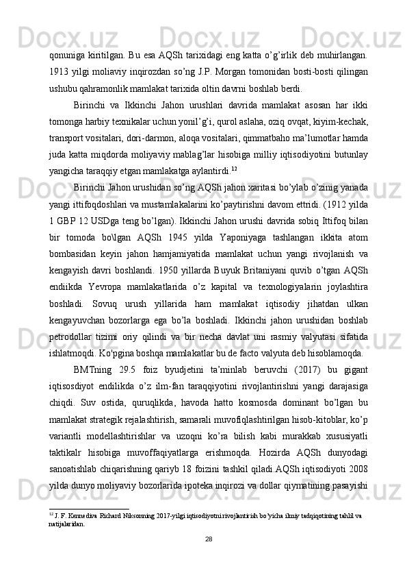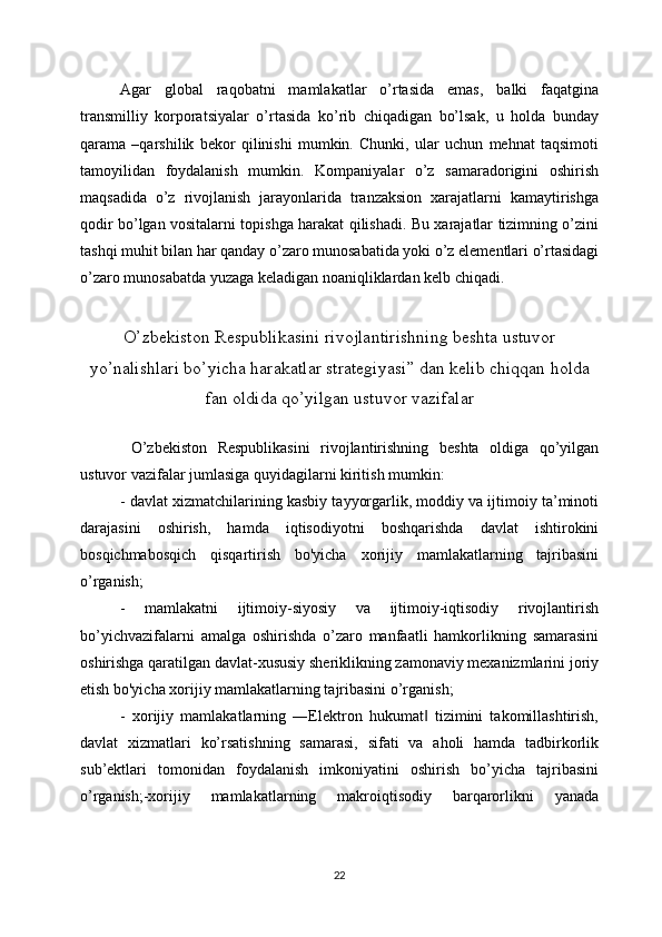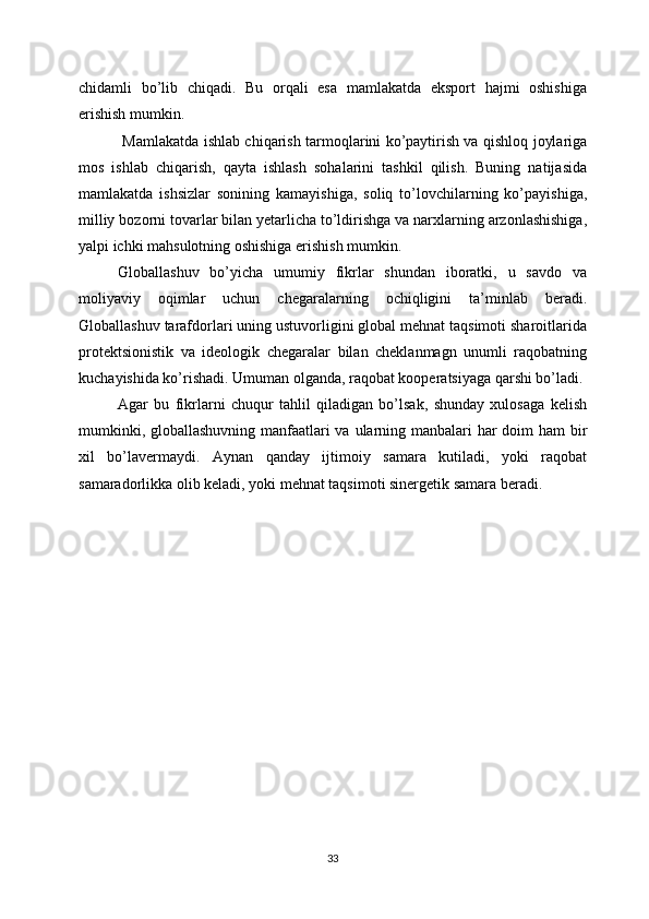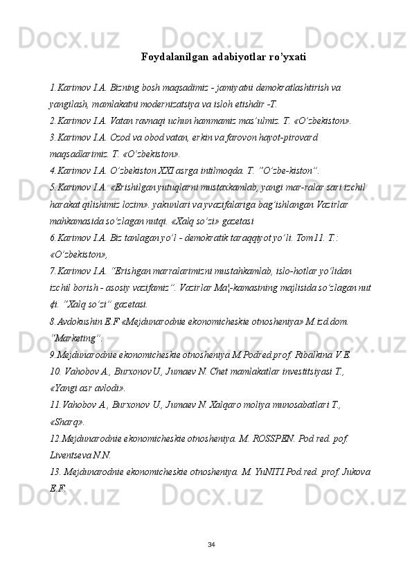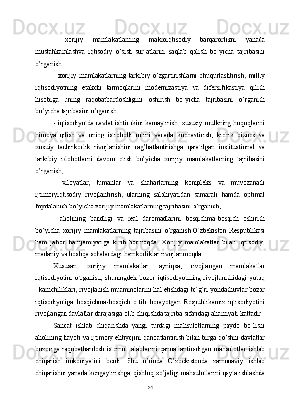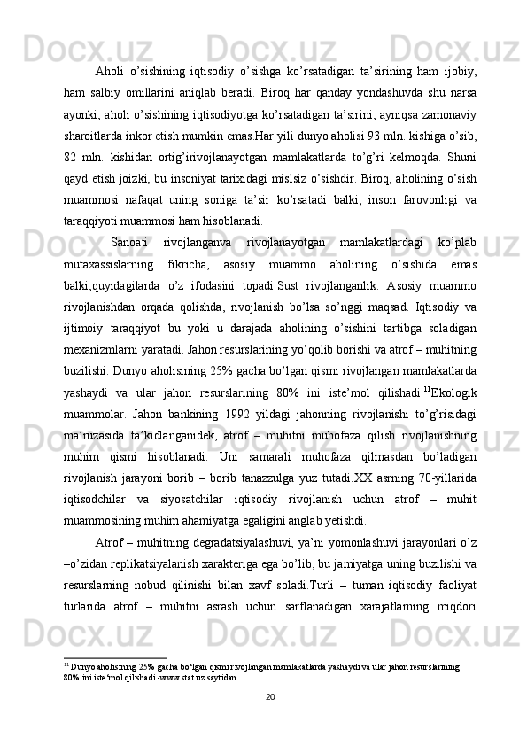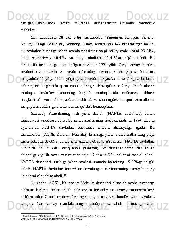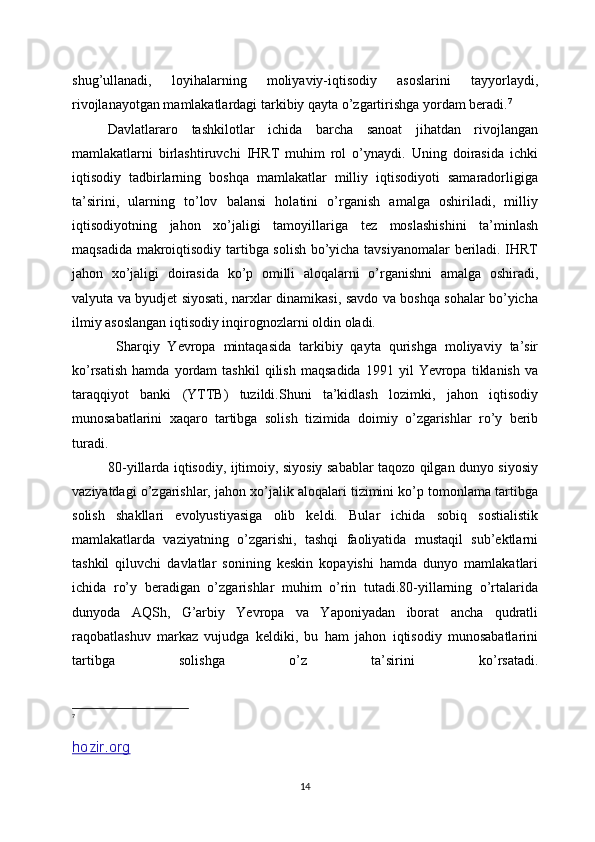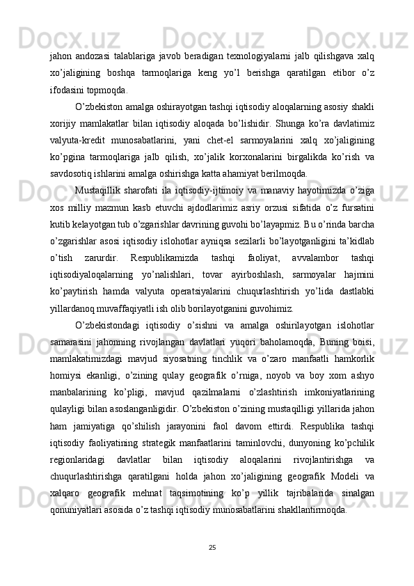 Dunyo mamlakatlarining iqtisodiy rivojlanish jihatidan guruhlanishi va ular o’rtasidagi munosabatlarning amal qilishi