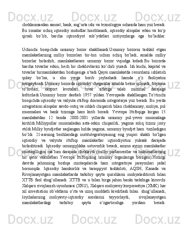 keltiriladi.Umumiy   bozor   dastlab   1957   yildan   Yevropada   shakllangan.To’rtinchi