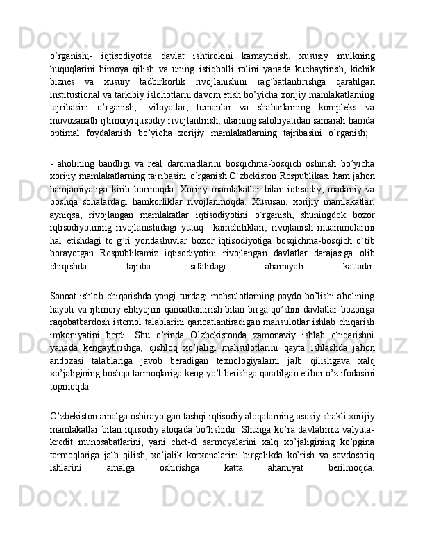 bo’yicha   tajribasini   o’rganish;-   xorijiy   mamlakatlarning   tarkibiy   o’zgartirishlarni