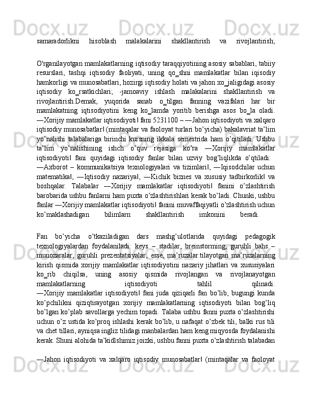 ayniqsa,   rivojlangan   mamlakatlar   iqtisodiyotini   o`rganish,   shuningdеk   bozor