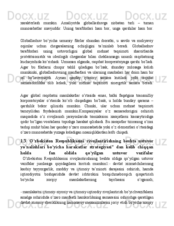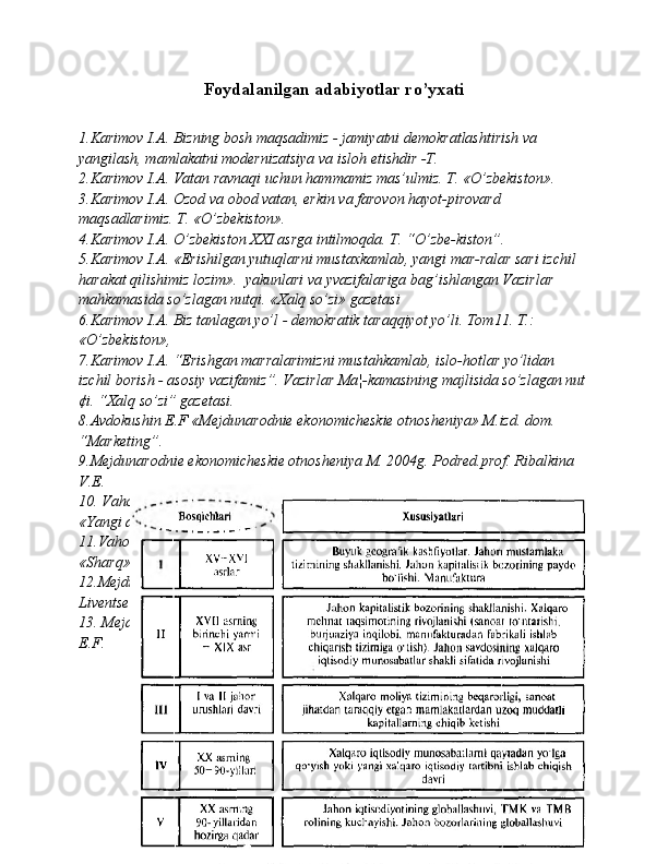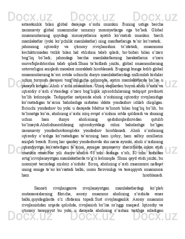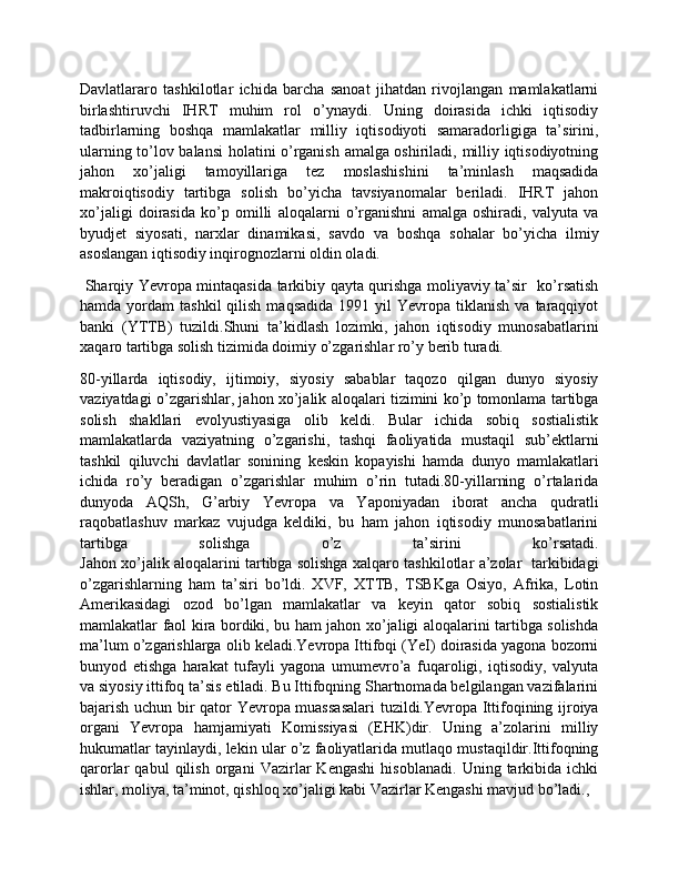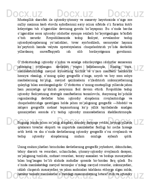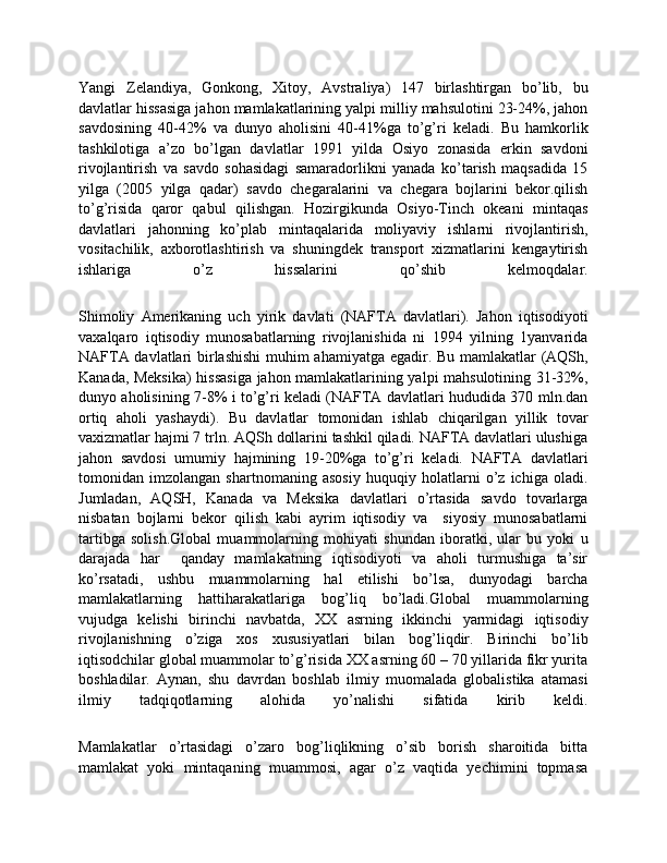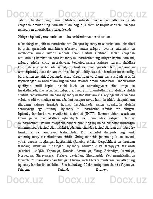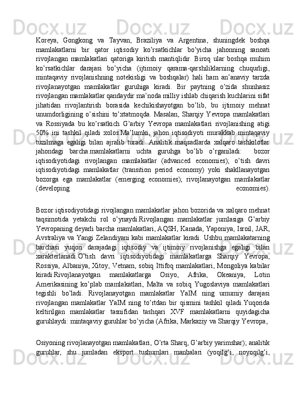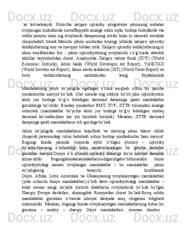 Dunyo mamlakatlarining iqtisodiy rivojlanish jihatidan guruhlanishi va ular o'rtasidagi munosabatlarning amal qilishi