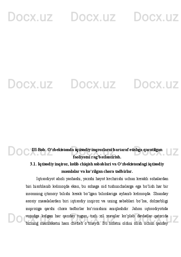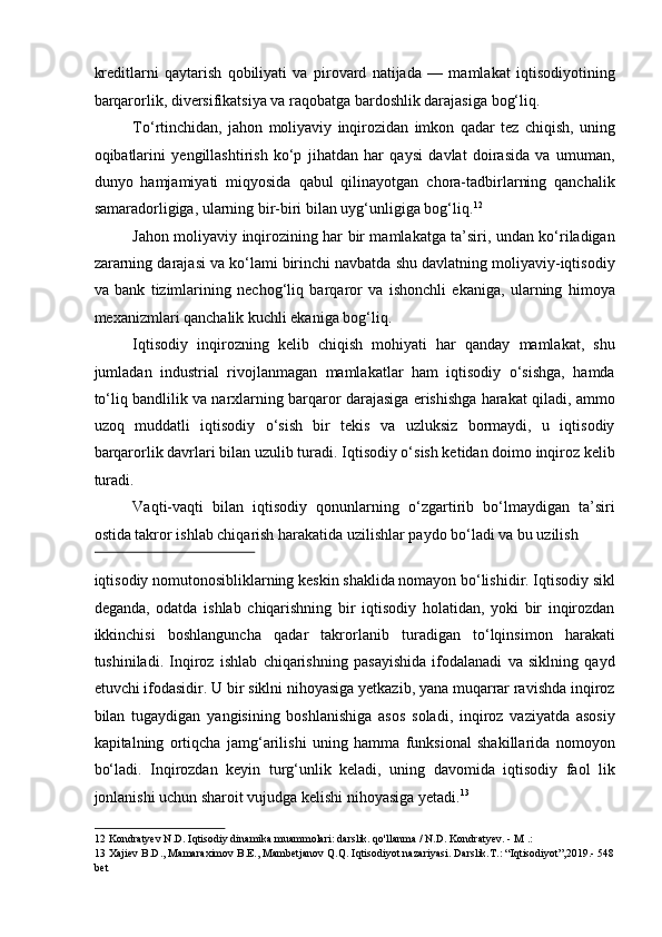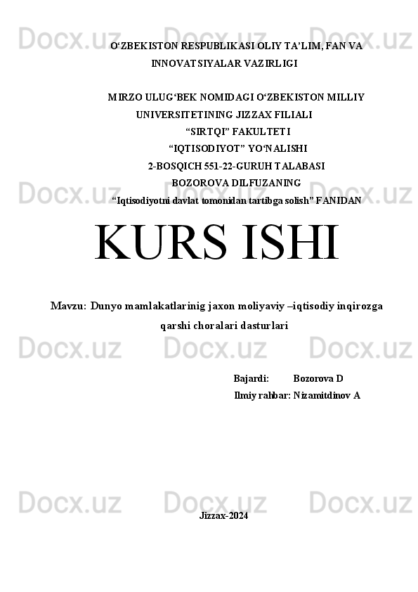 Dunyo mamlakatlarining jaxon moliyaviy iqtisodiy inqiroziga qarshi