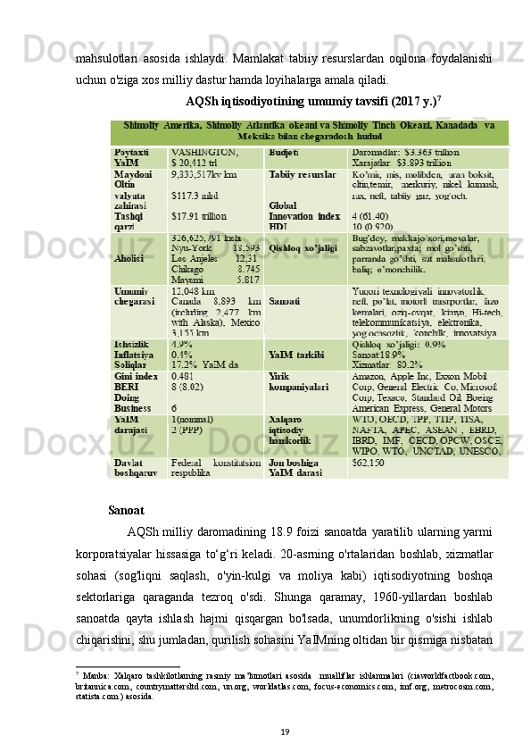 2.1.AQSH iqtisodiyotining qiyosiy tavsifida yalpi ichki mahsulot tarkibidagi tendentsiyalar 12
