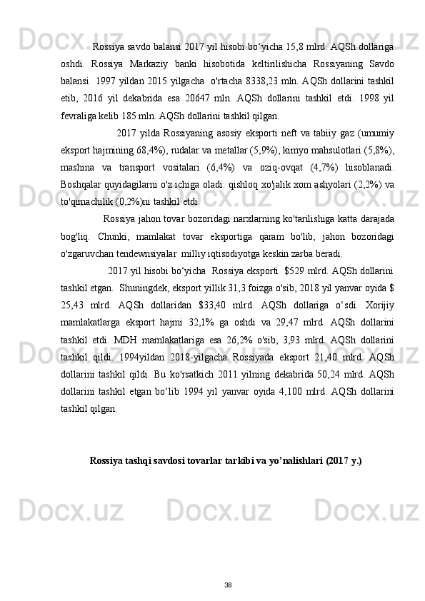 2.2.Rossiya iqtisodiyotining qiyosiy tavsifida yalpi ichki mahsulot tarkibidagi tendentsiyalar 26