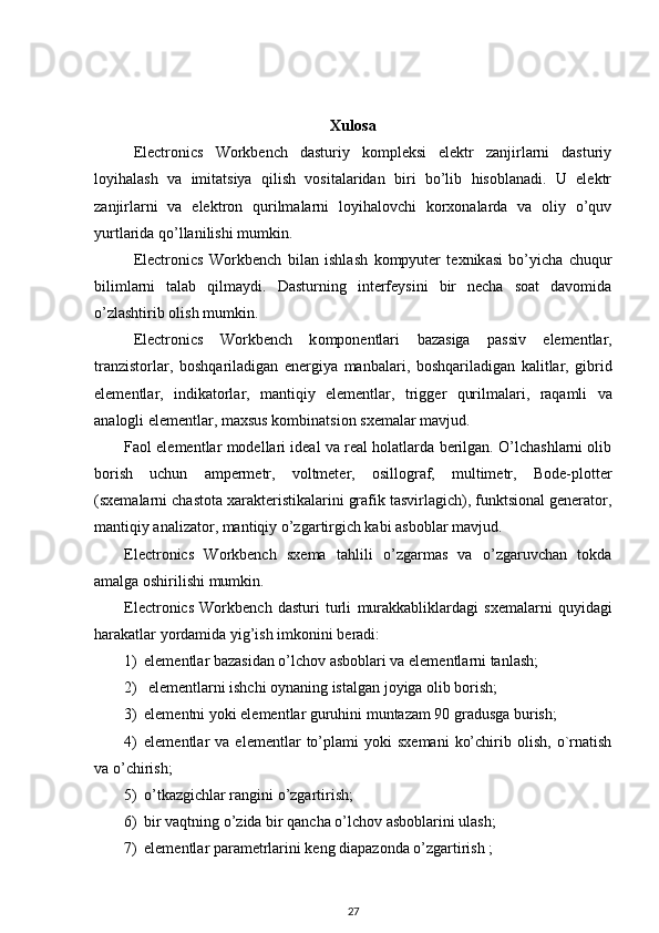 I Bob. Electronics Workbenche (EWB)modellashtirish dasturi asosiy xususiyatlari 4