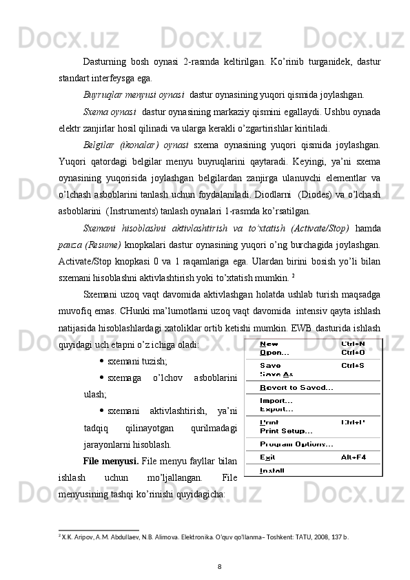 2.1. Electronics Workbench amaliy dasturiy paketini o‘rganish. 15