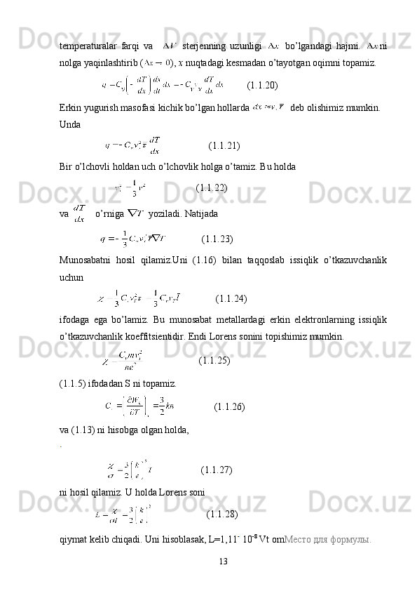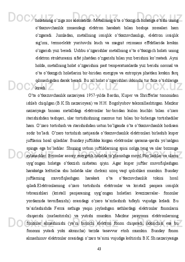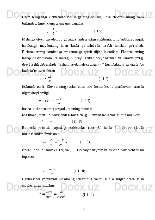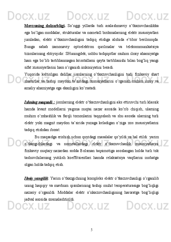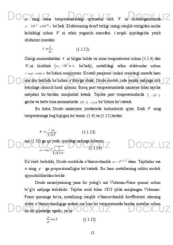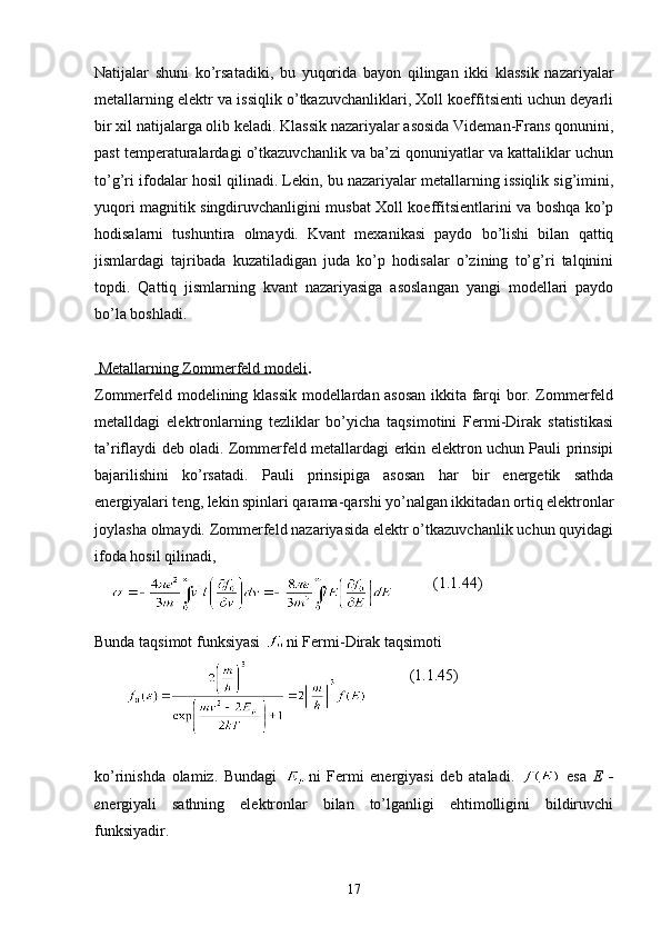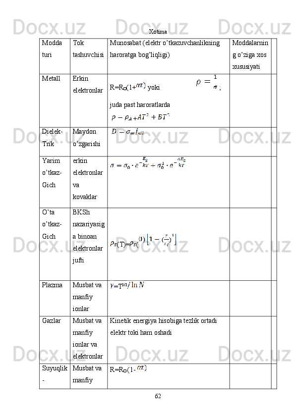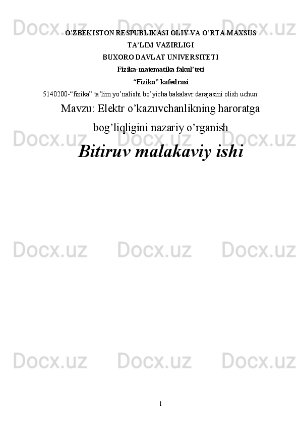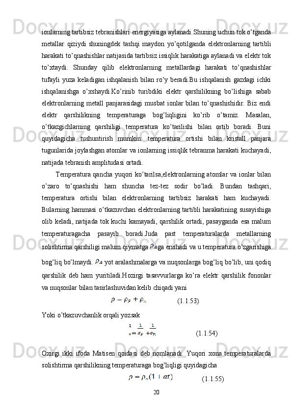 Elektr o'tkazuvchanlikning haroratga bog'liqligini nazariy o'rganish
