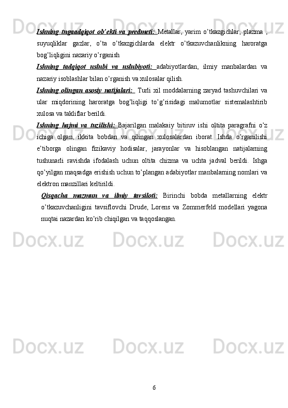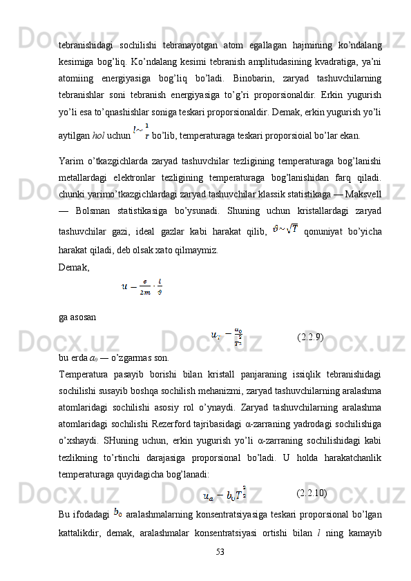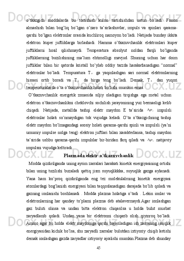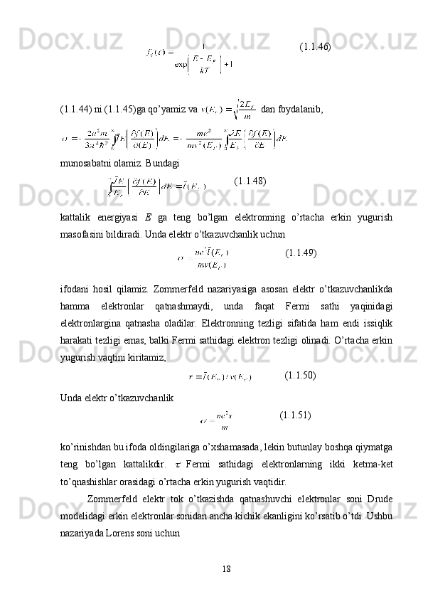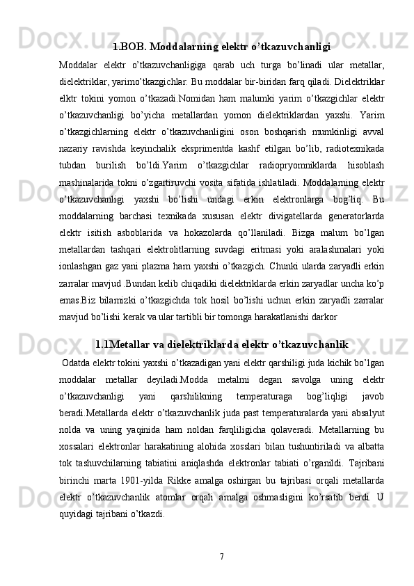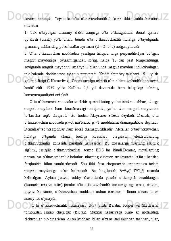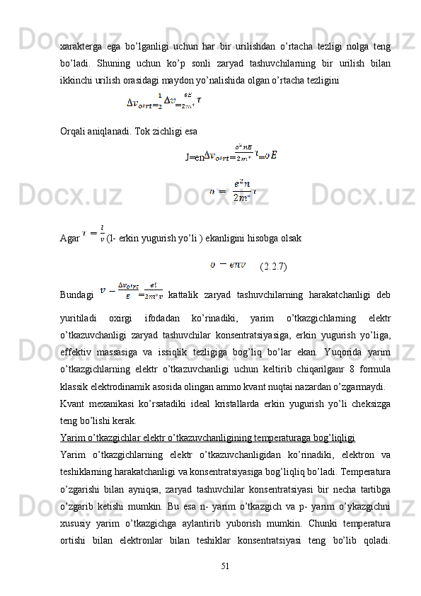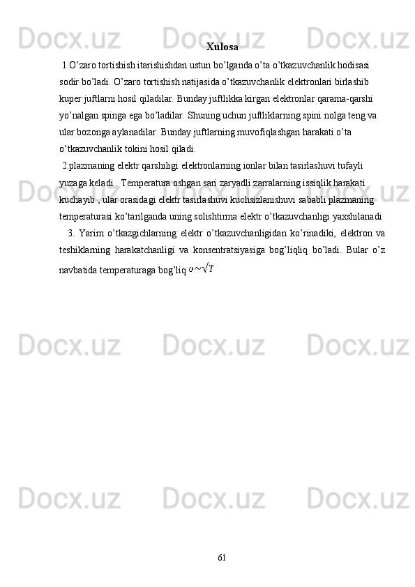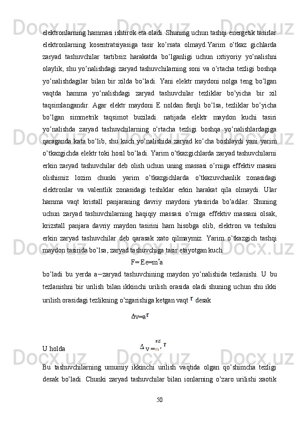 Elektr o'tkazuvchanlikning haroratga bog'liqligini nazariy o'rganish