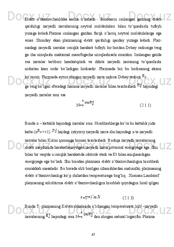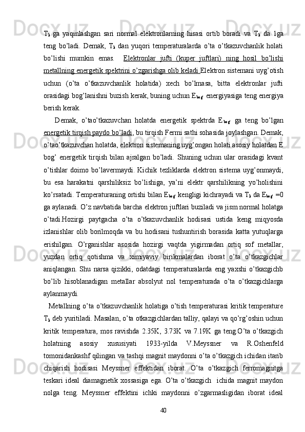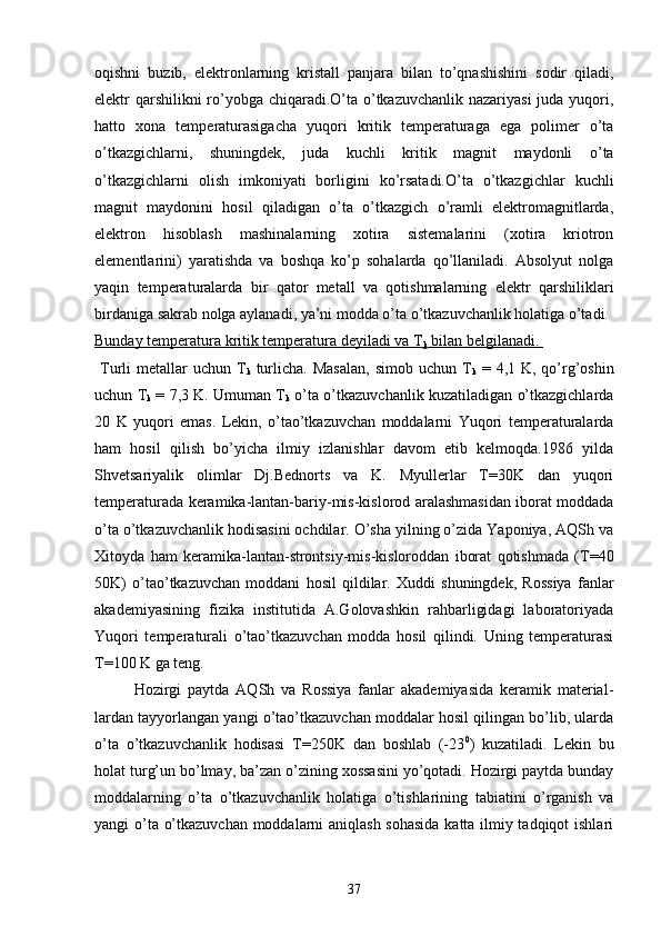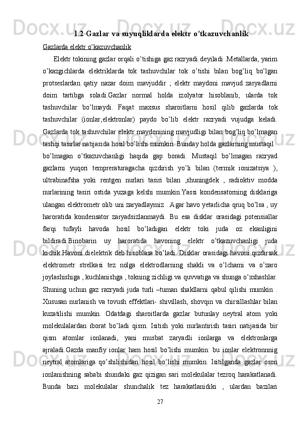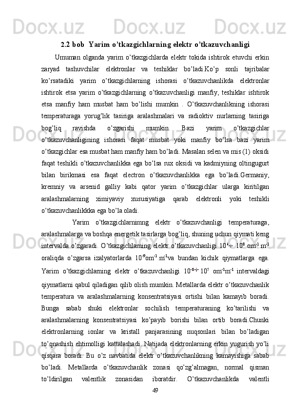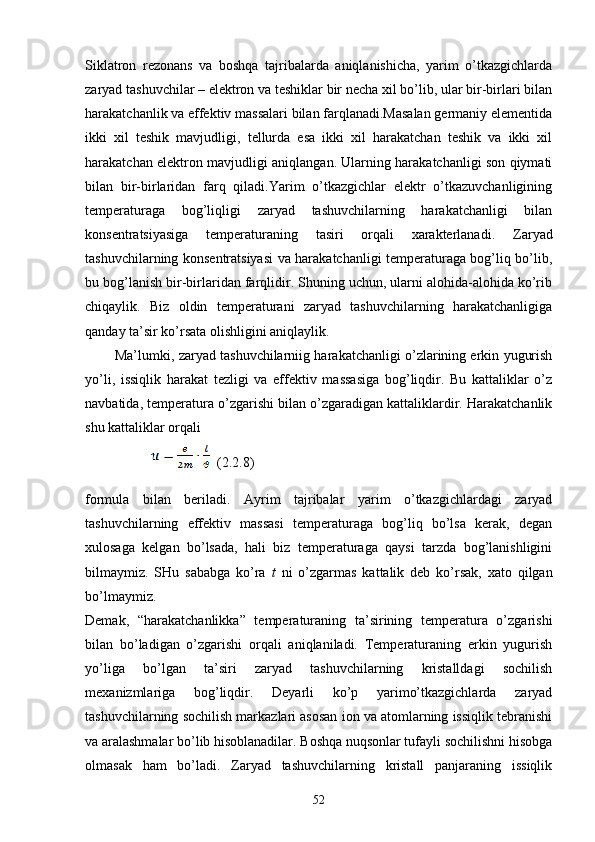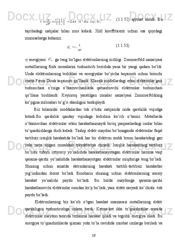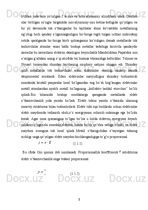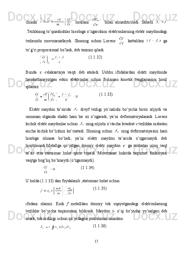 Elektr o'tkazuvchanlikning haroratga bog'liqligini nazariy o'rganish