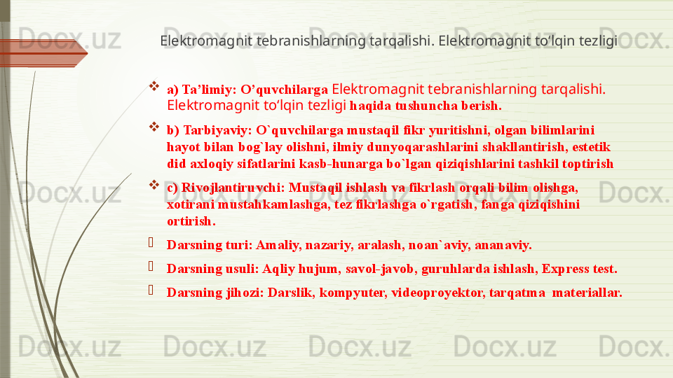 Elektromagnit tebranishlarning tarqalishi. Elektromagnit to‘lqin tezligi
