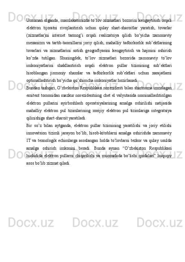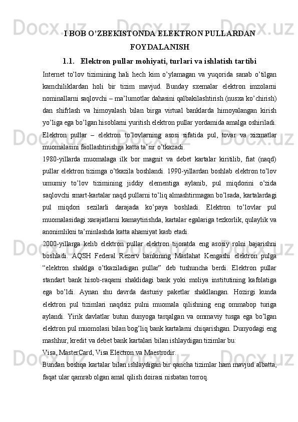 Elektron pullar va ularni rivojlantirish istiqbollari