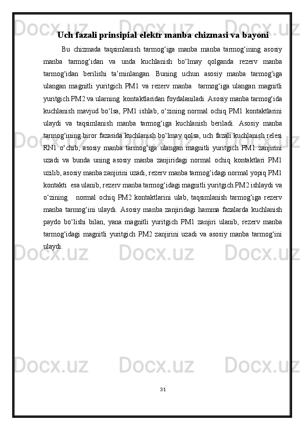 | 7 | Elektr manba prinsipial chizmasining bayoni................................ | 34 |
