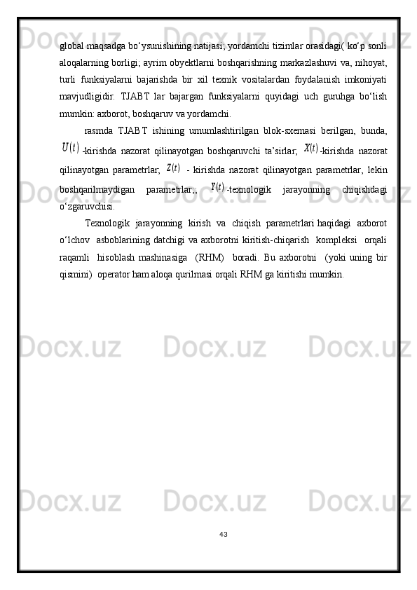 | 9 | Boshqarish tizimini arxitekturasi bayoni....................................... | 41 |
