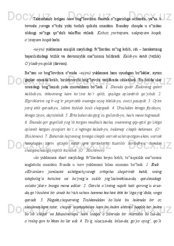 ERGASHTIRUVCHI BOG’LOVCHI VA YUKLAMALAR