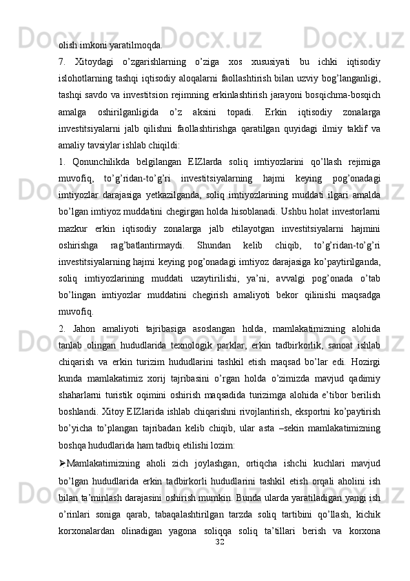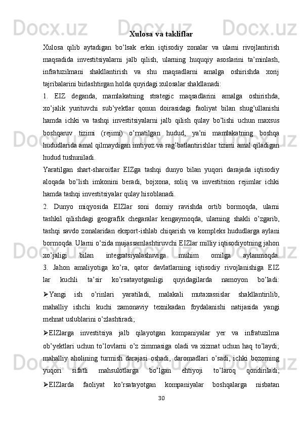 Erkin iqtisodiy zonalarni tashkil etish va boshqarishning xorijiy tajribalari