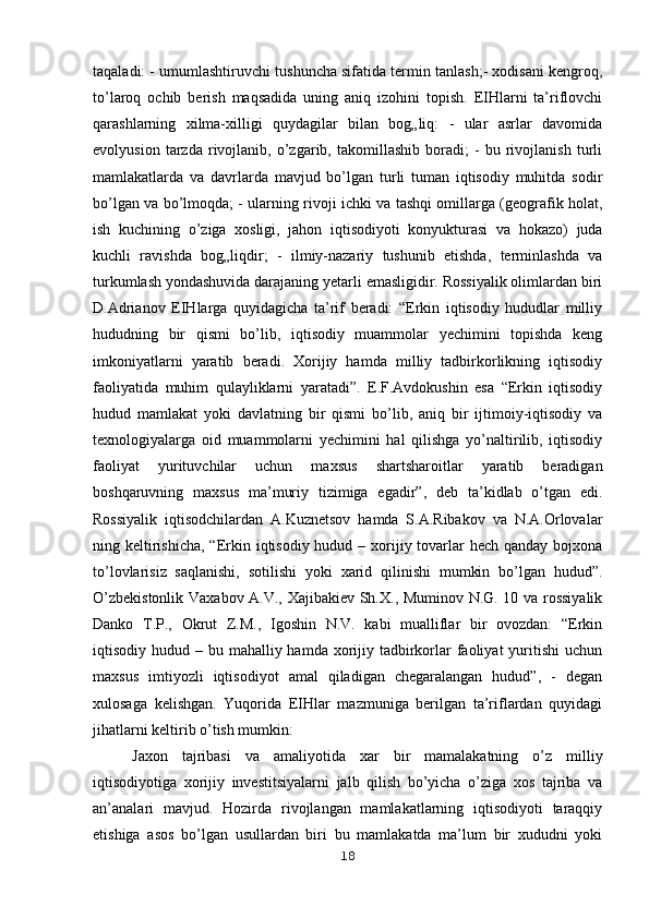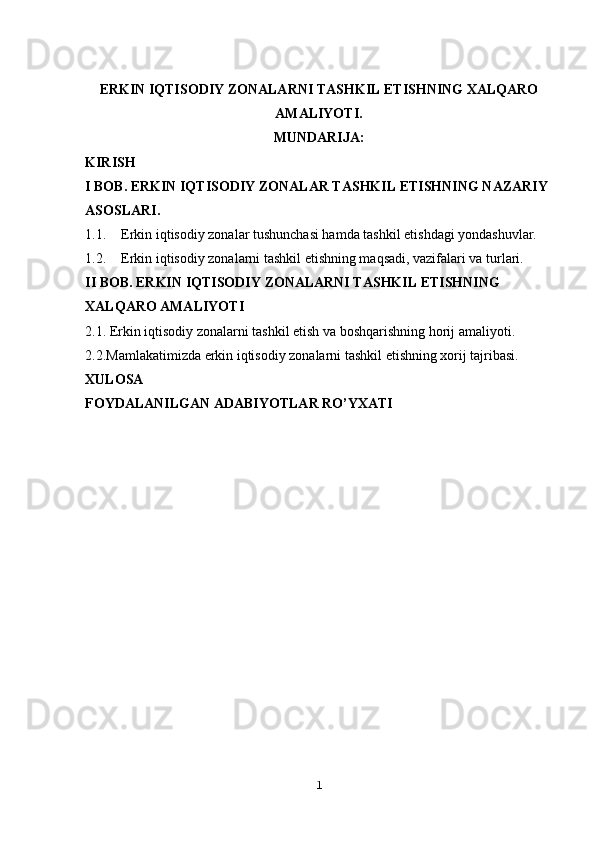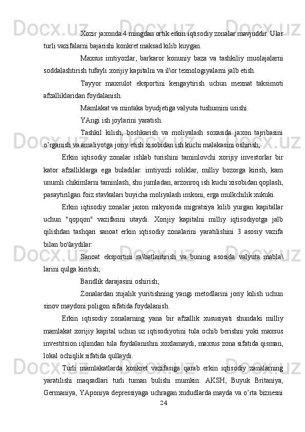 Erkin iqtisodiy zonalarni tashkil etishning xalqaro amaliyoti