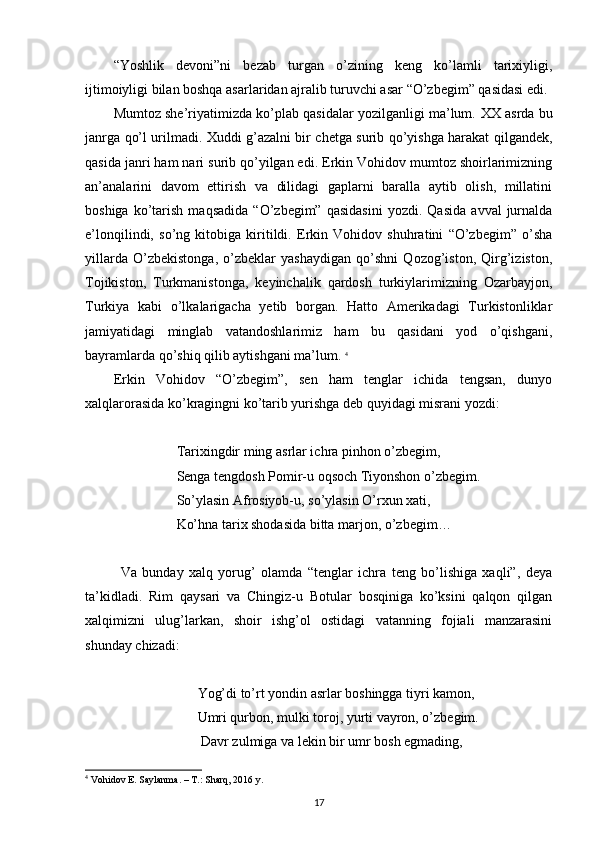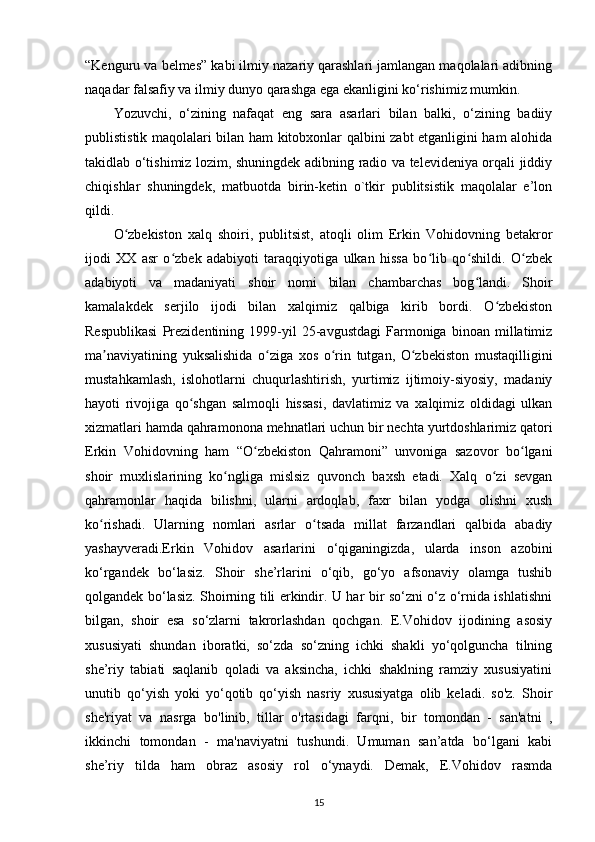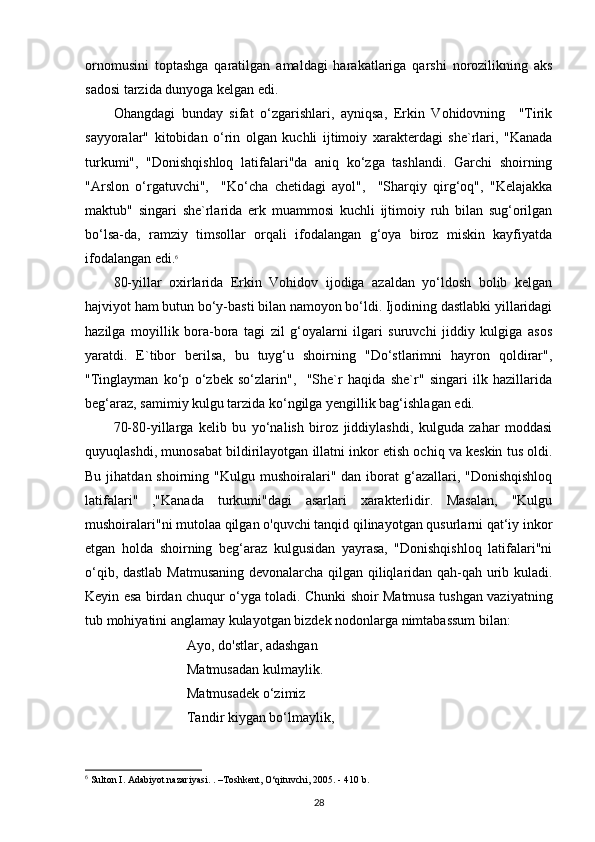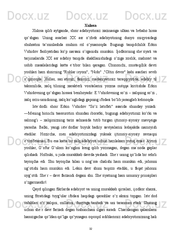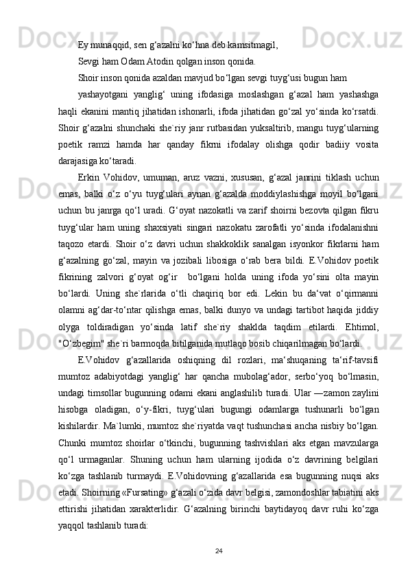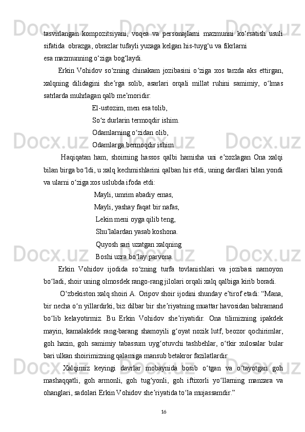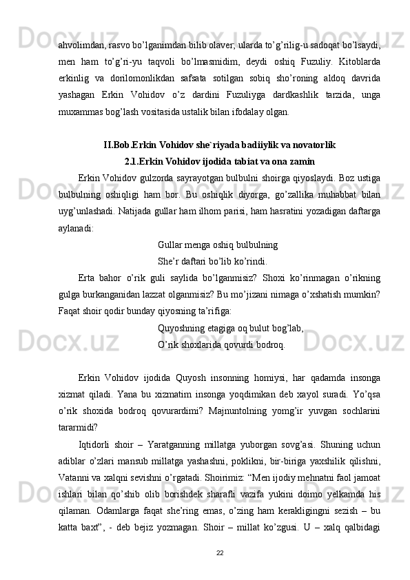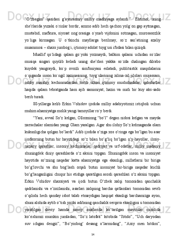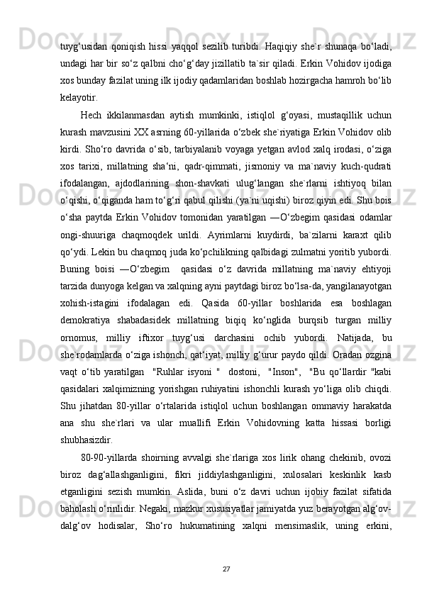 Erkin Vohidov she`riyada badiiylik va novatorlik