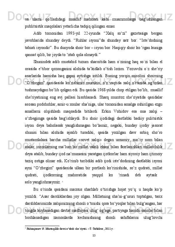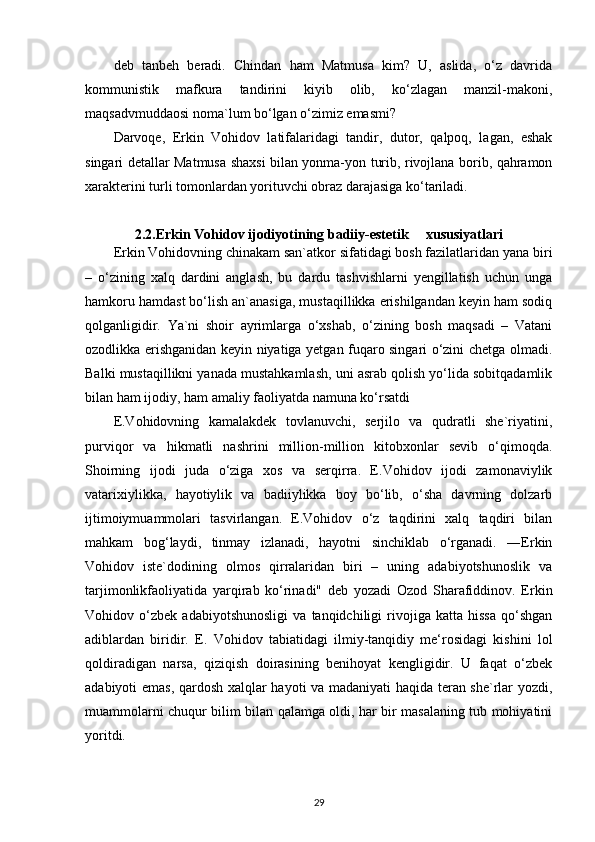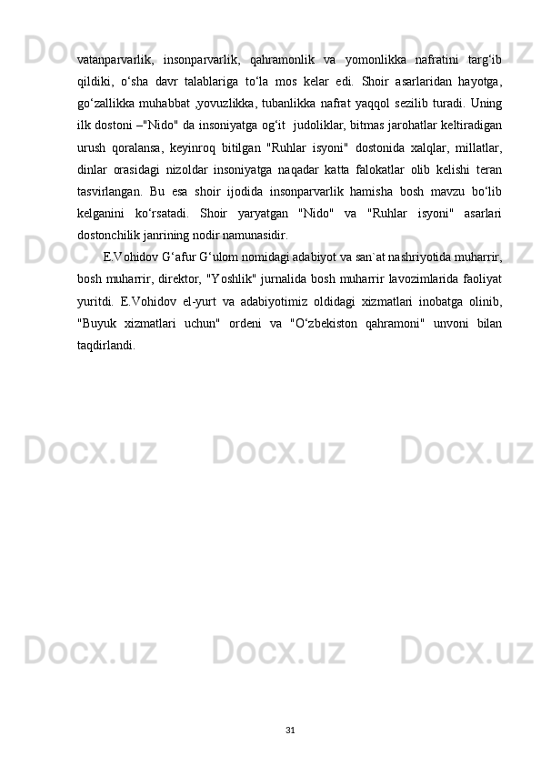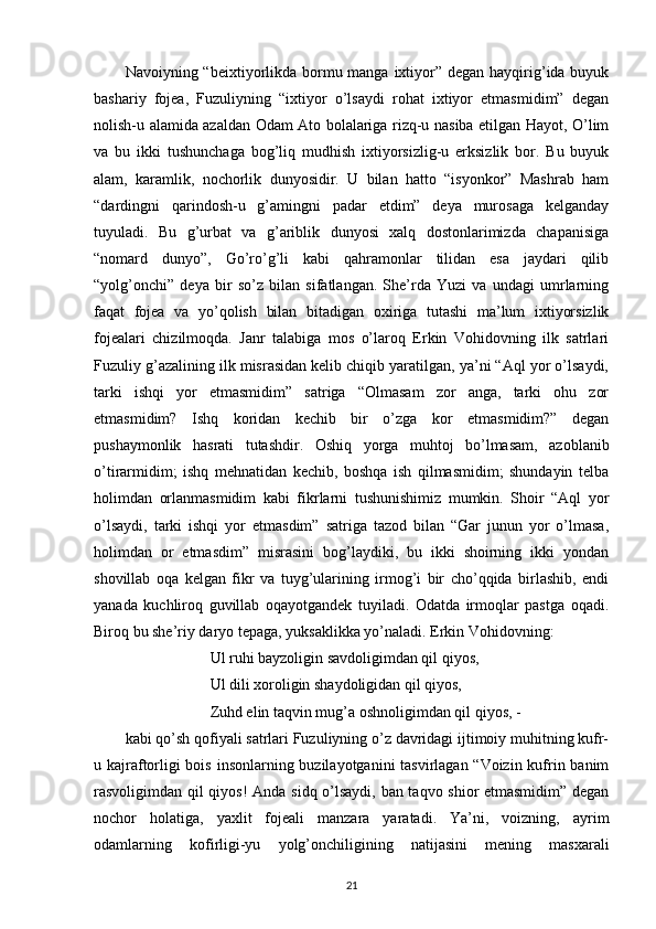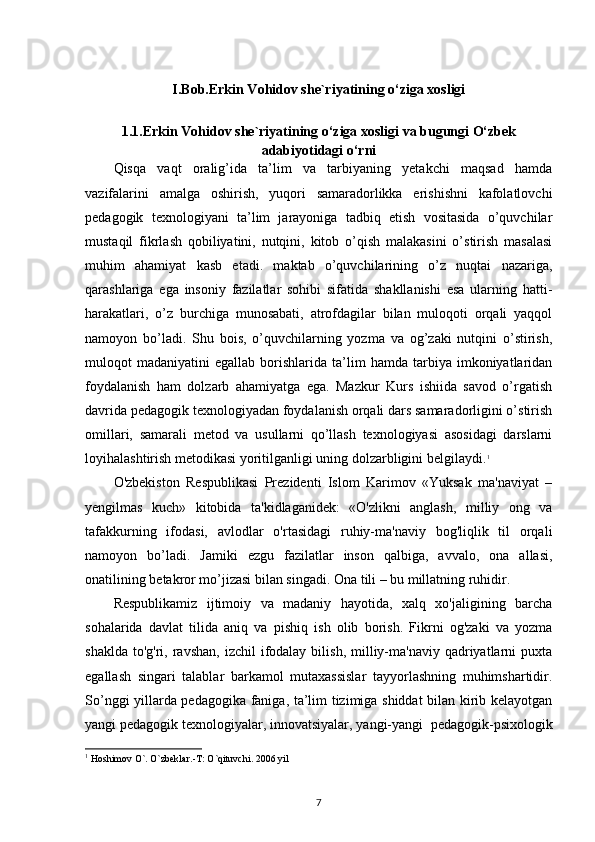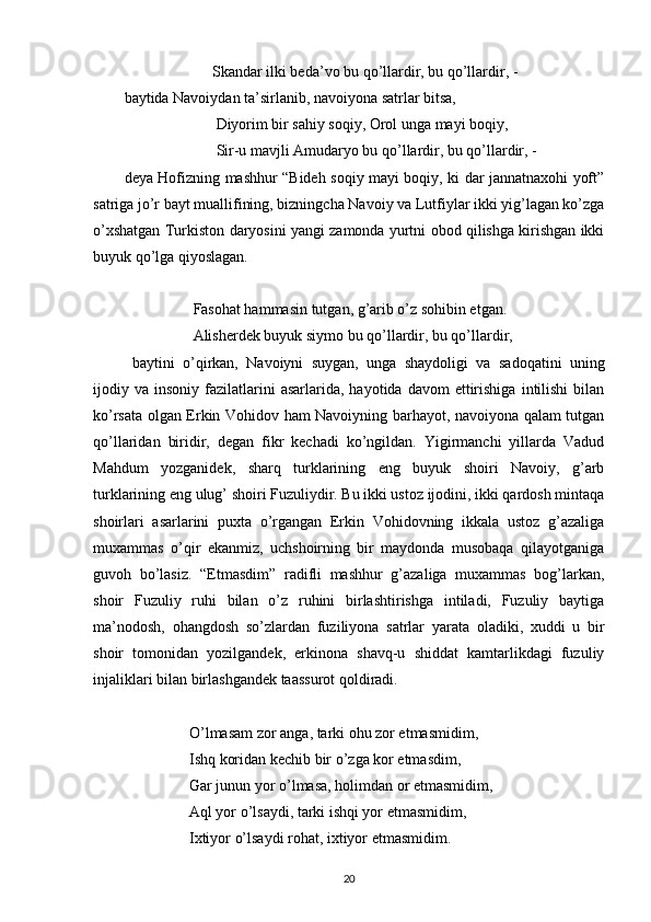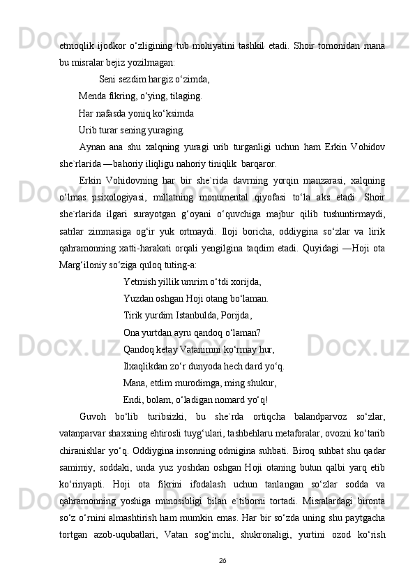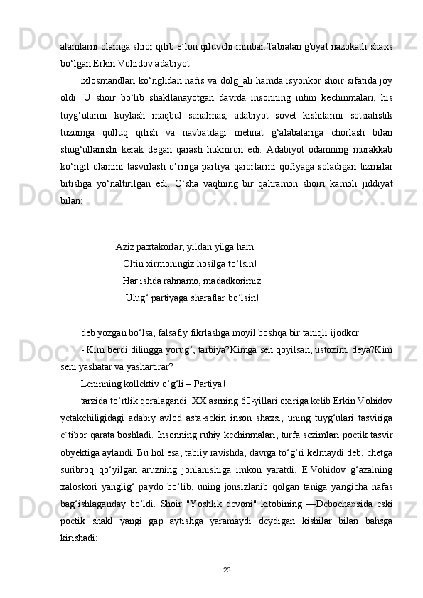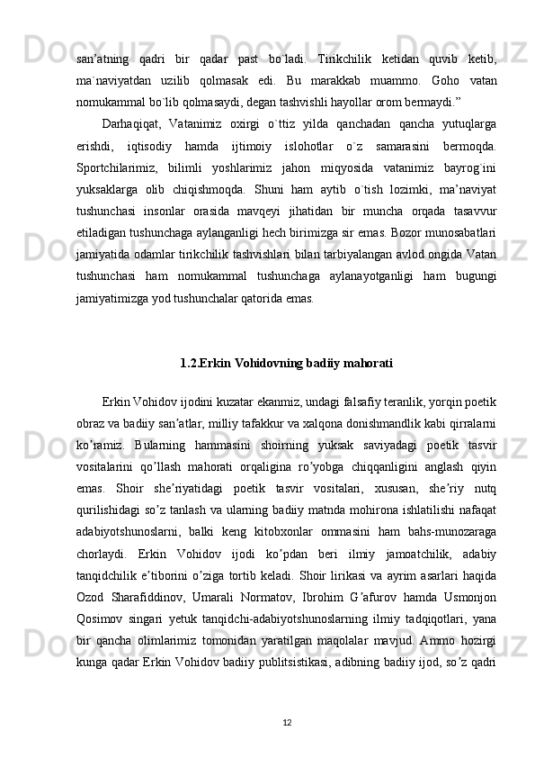 Erkin Vohidov she`riyada badiiylik va novatorlik
