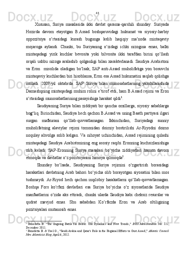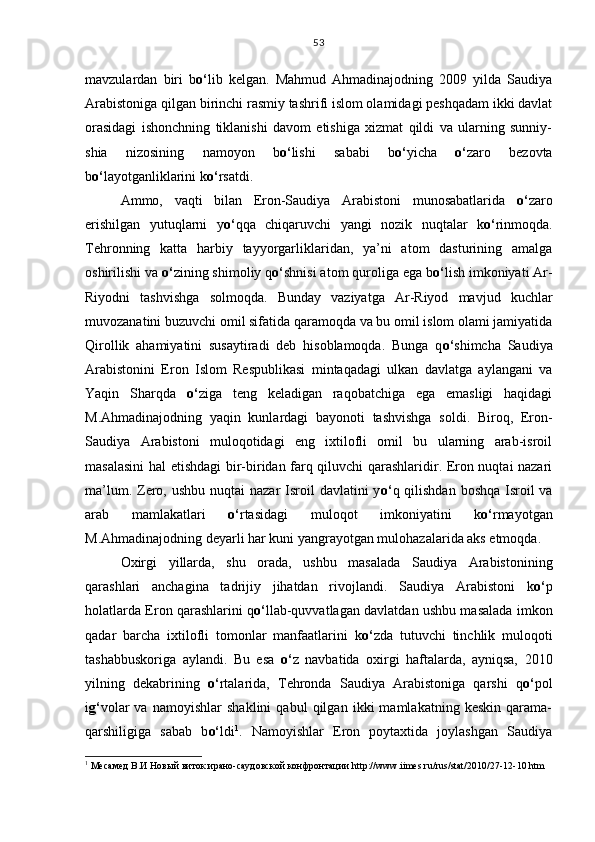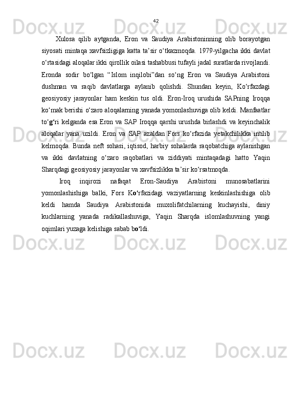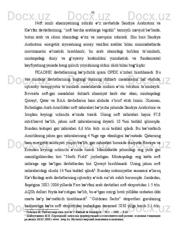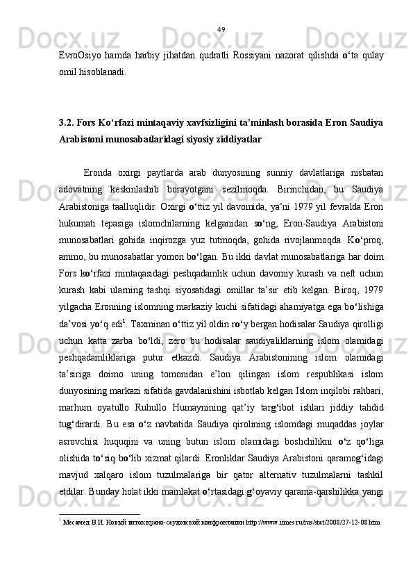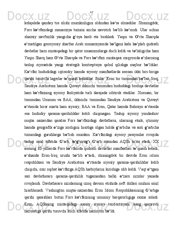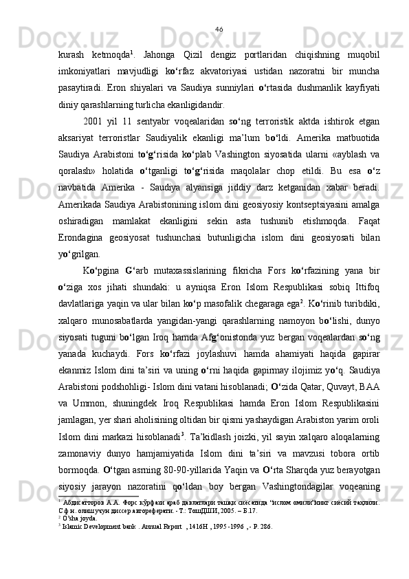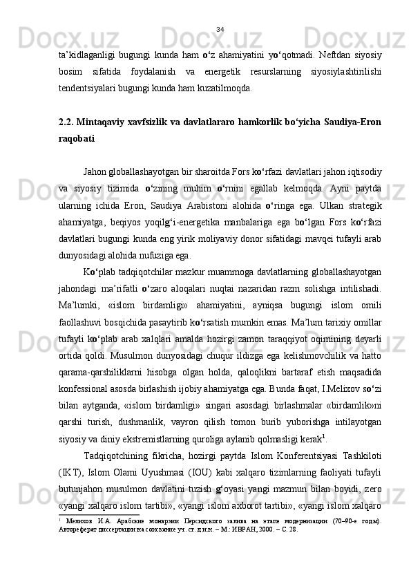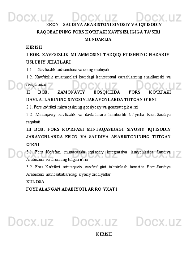 Eron – Saudiya arabistoni siyosiy va iqtisodiy raqobatining fors ko‘rfazi xavfsizligiga ta’siri
