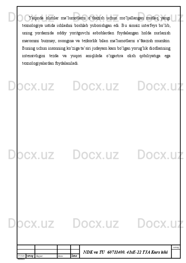 | 2.2Wi-Fi texnologiyasi orqali ma’lumot uzatish.............................................. |