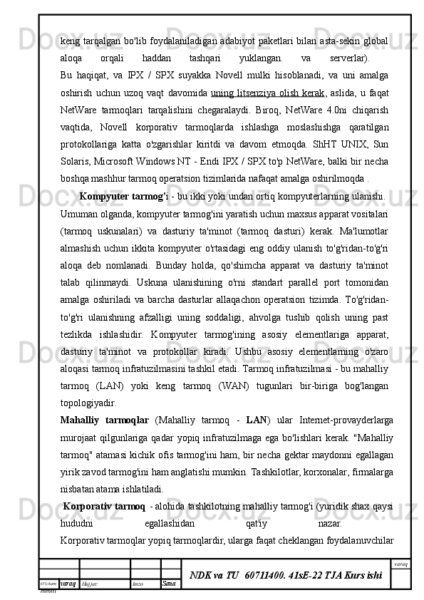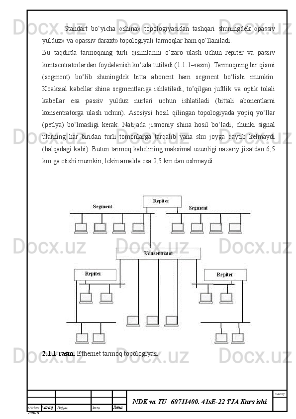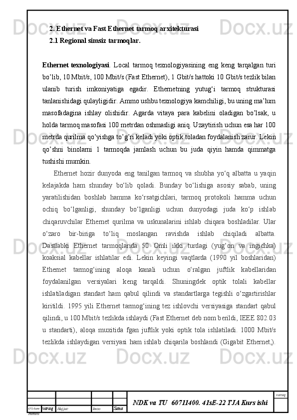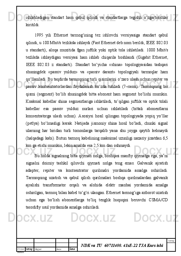 | 2.Ethernet va Fast Ethernet tarmoq arxitekturasi |
