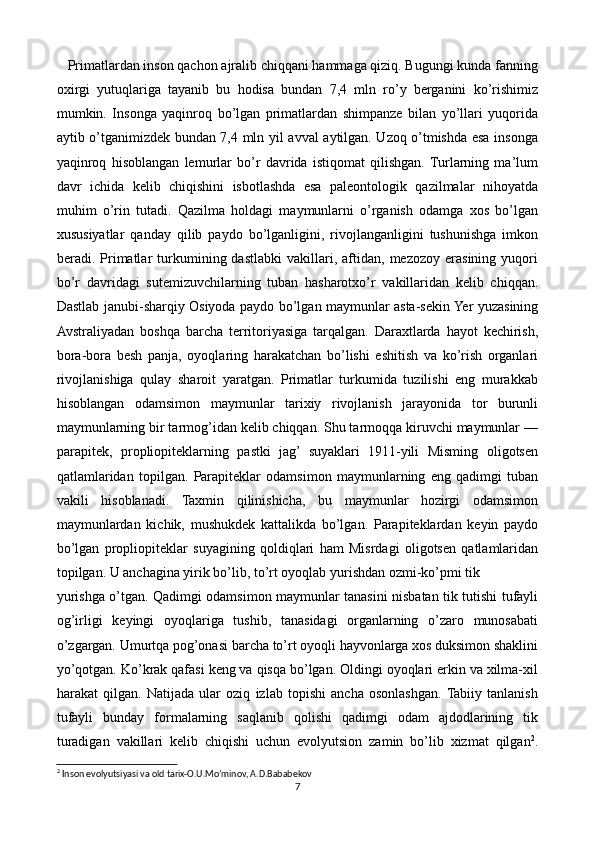 Etnografiya va etnologiya fanlarining ibtidoiy jamoa tarixining o'rganishdagi ahamiyati