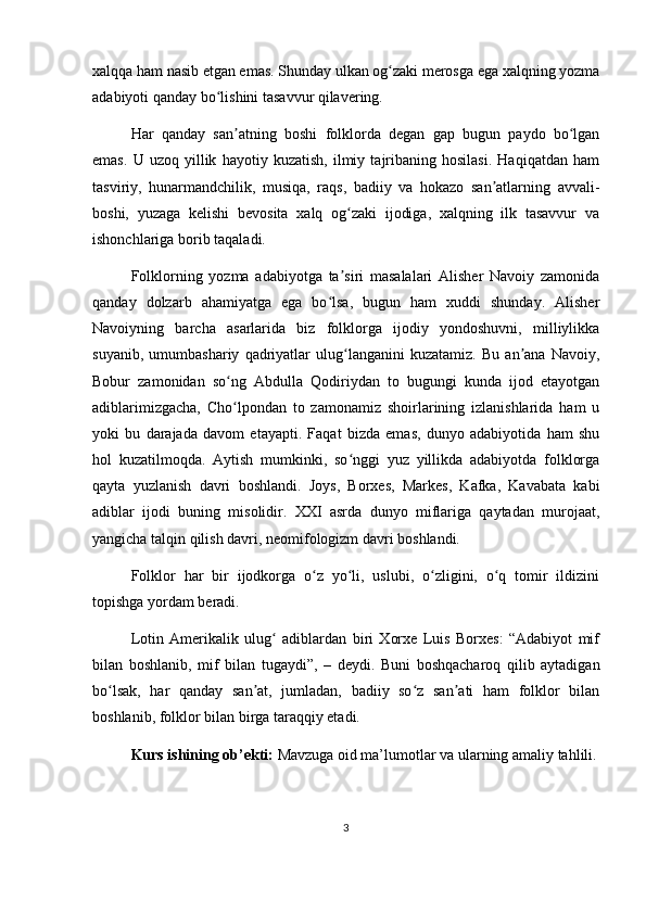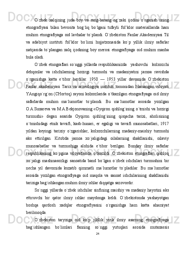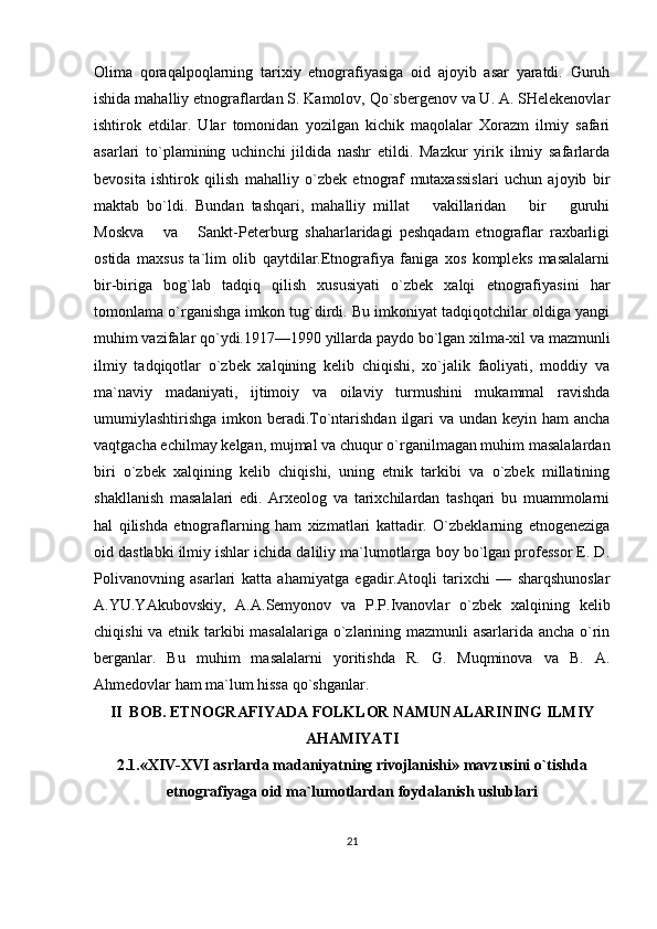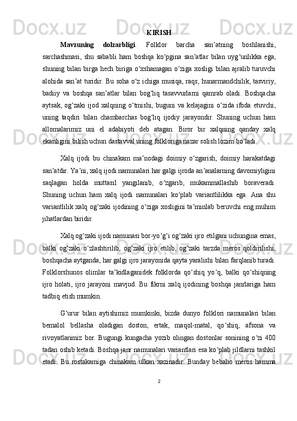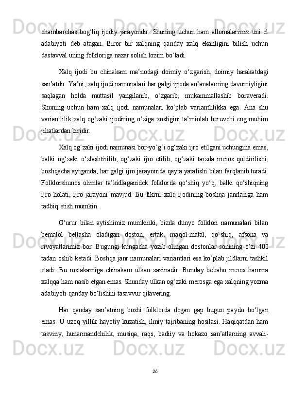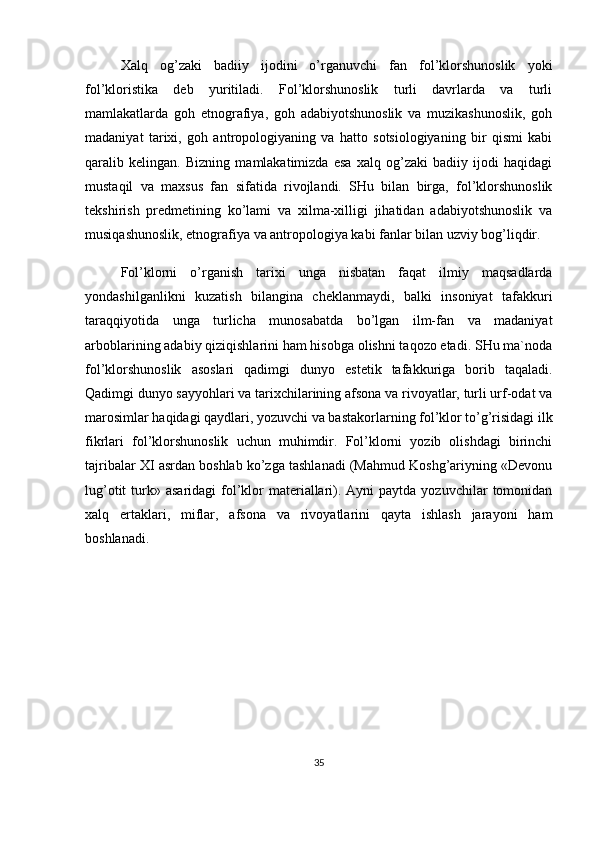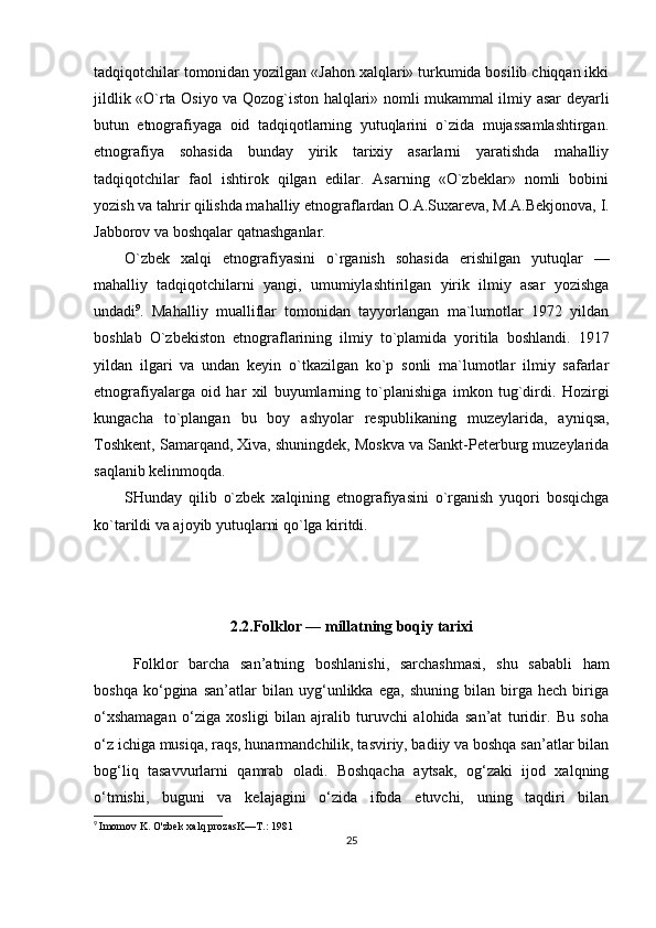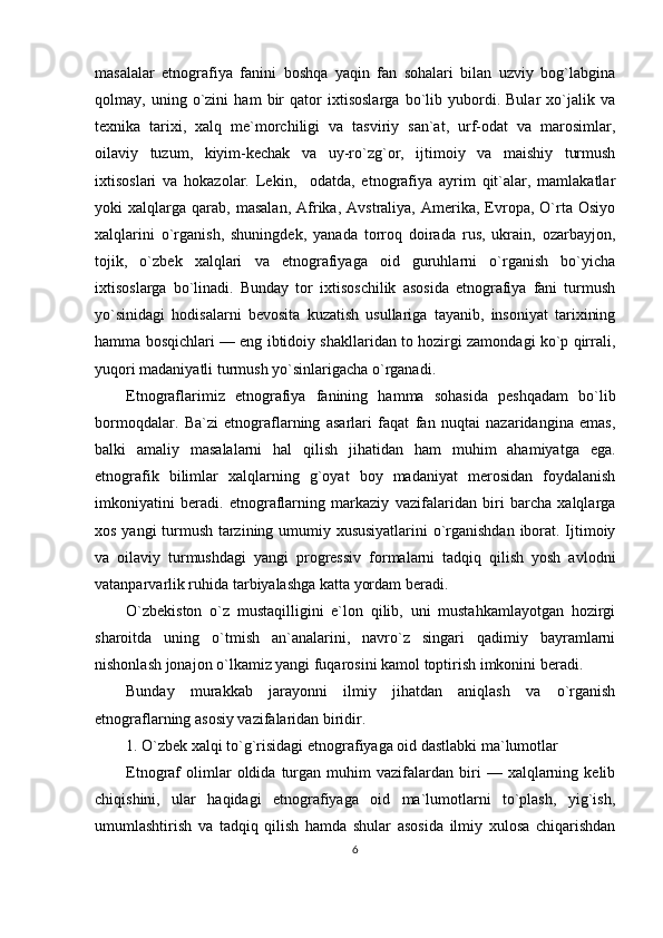 Etnografiyada folklor namunalarining ilmiy ahamiyati