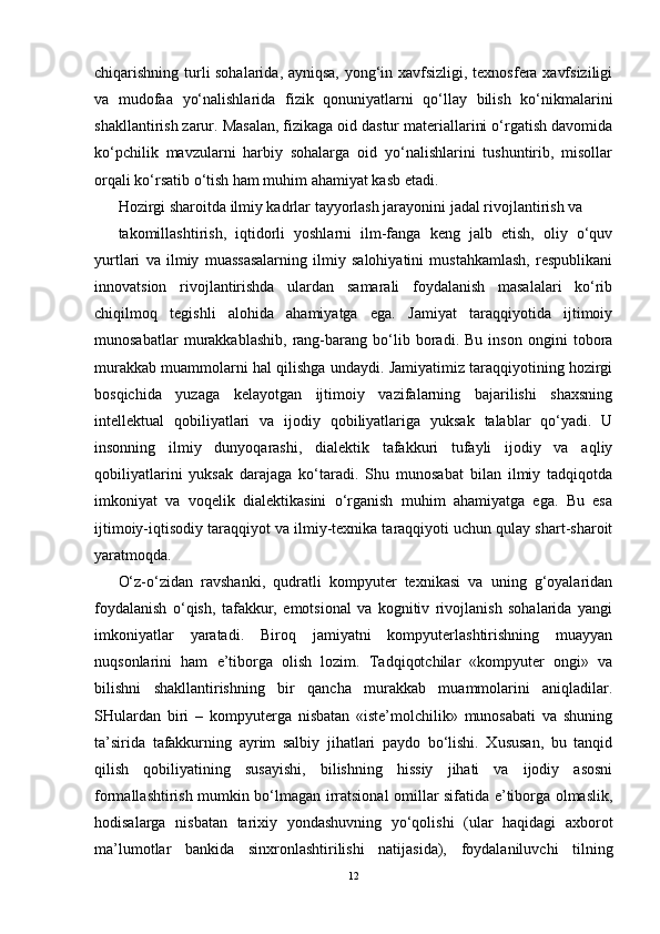 Fan va texnika taraqqiyotining jadalashuvi