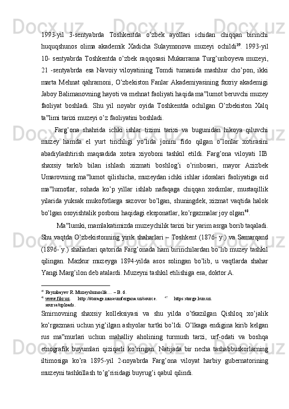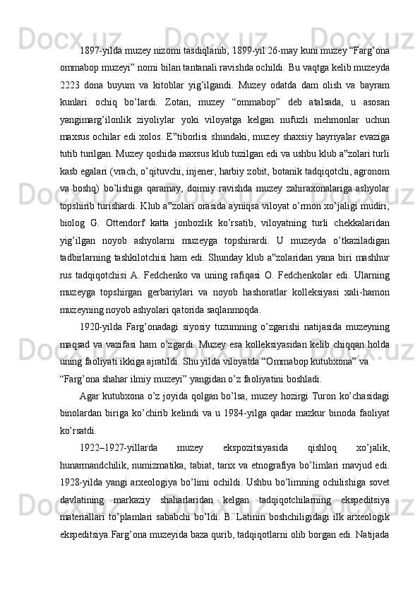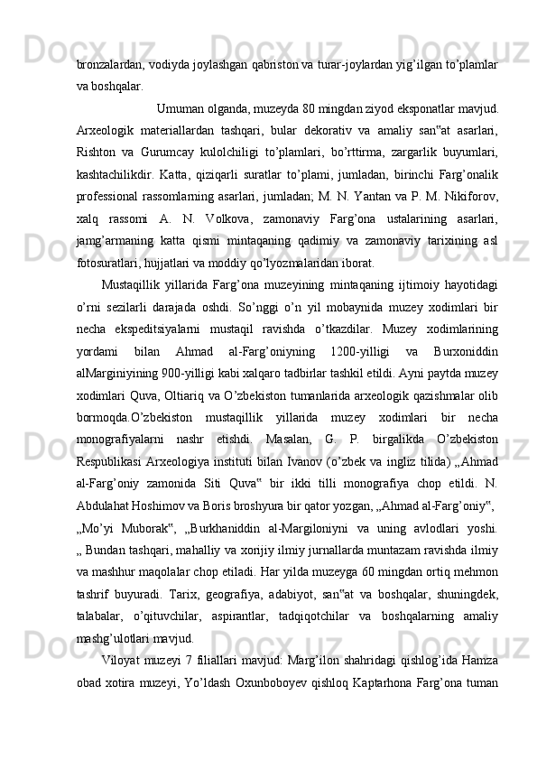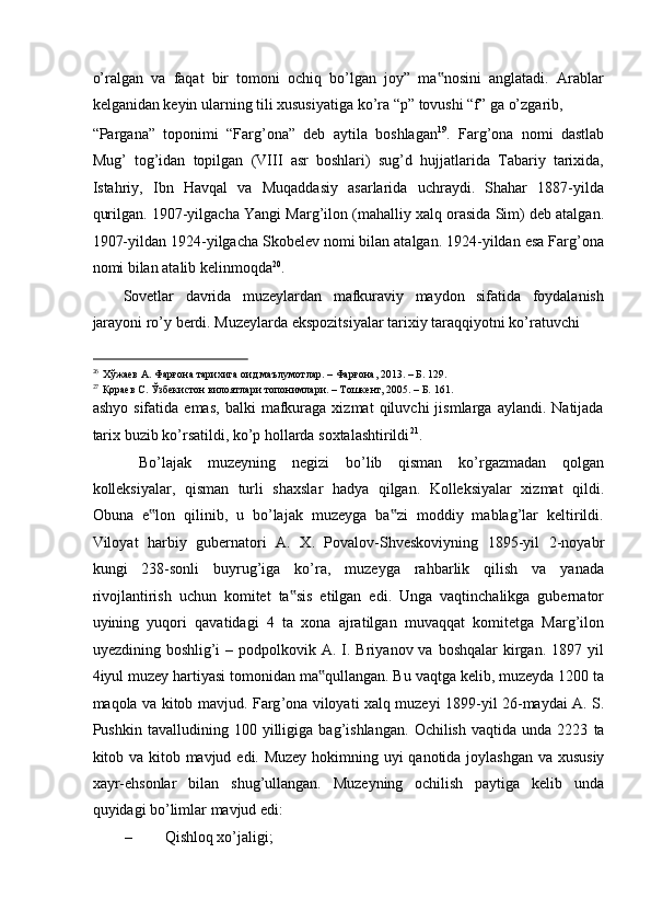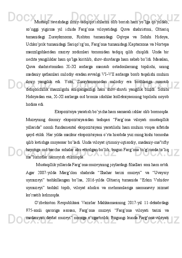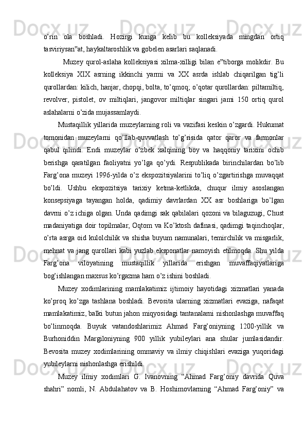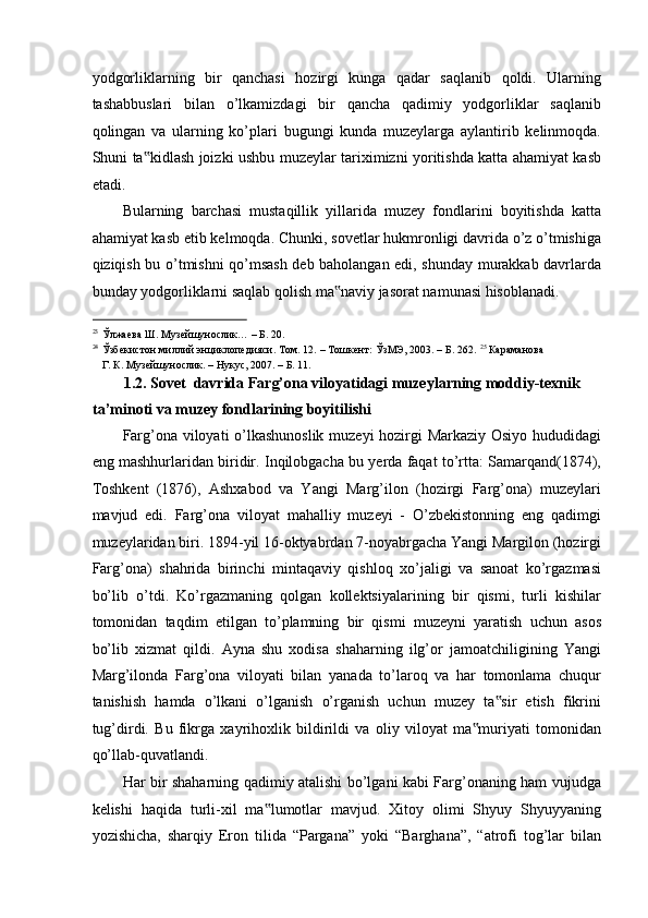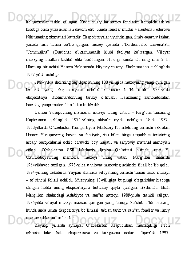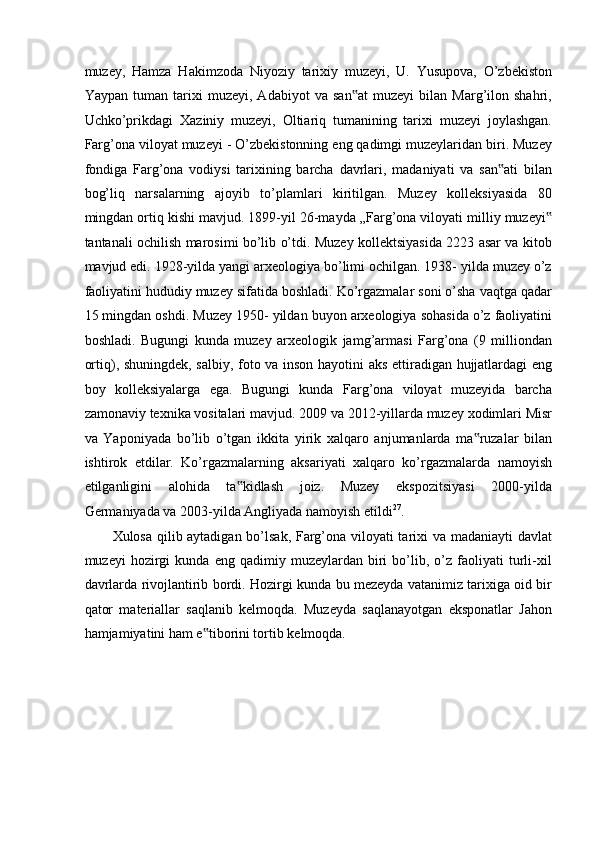 FARG’ONA VILOYATI MUZEYLARI TARIXI