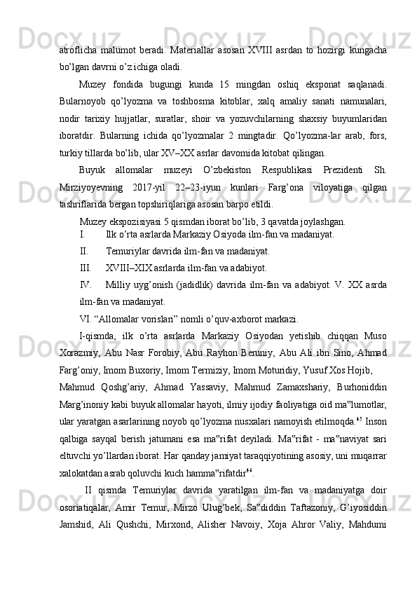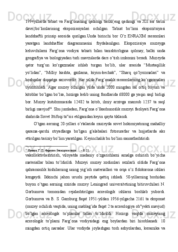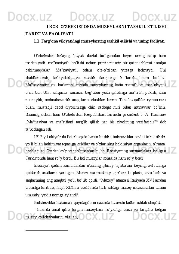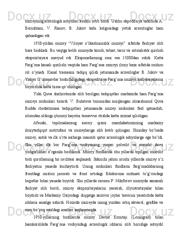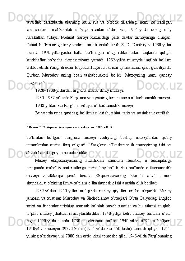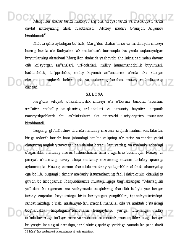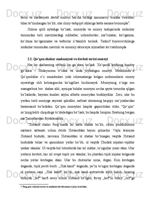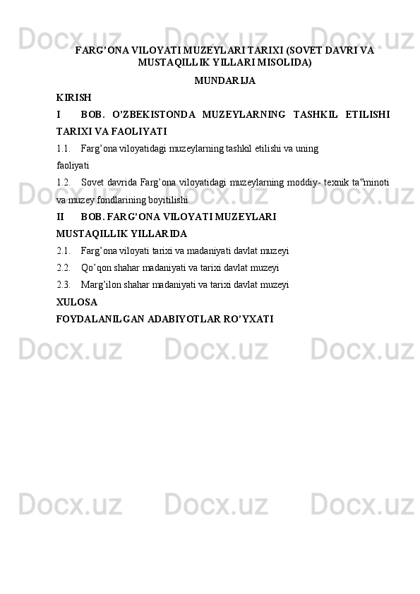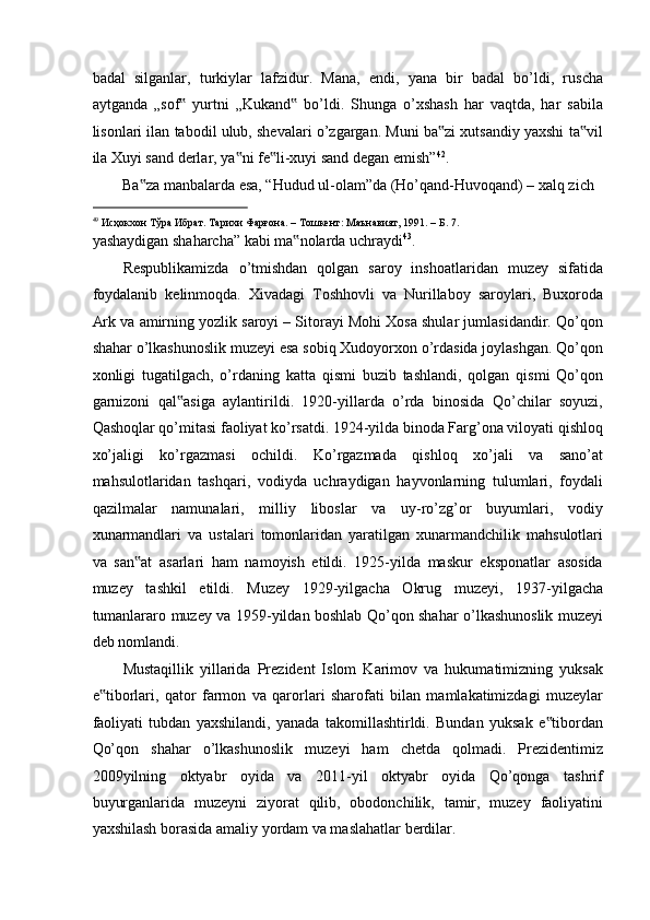 FARG’ONA VILOYATI MUZEYLARI TARIXI
