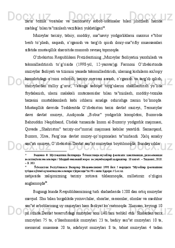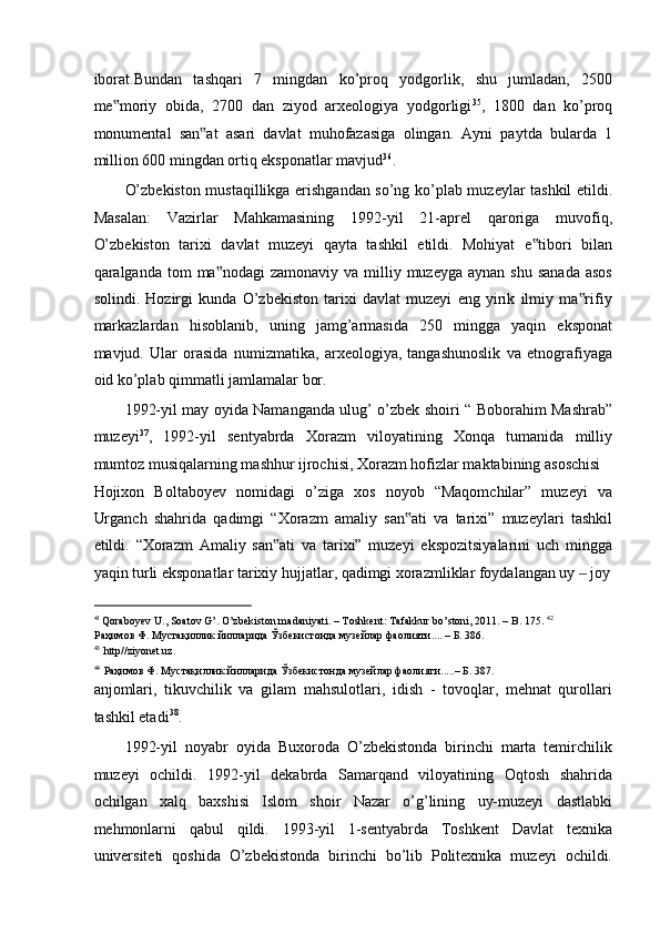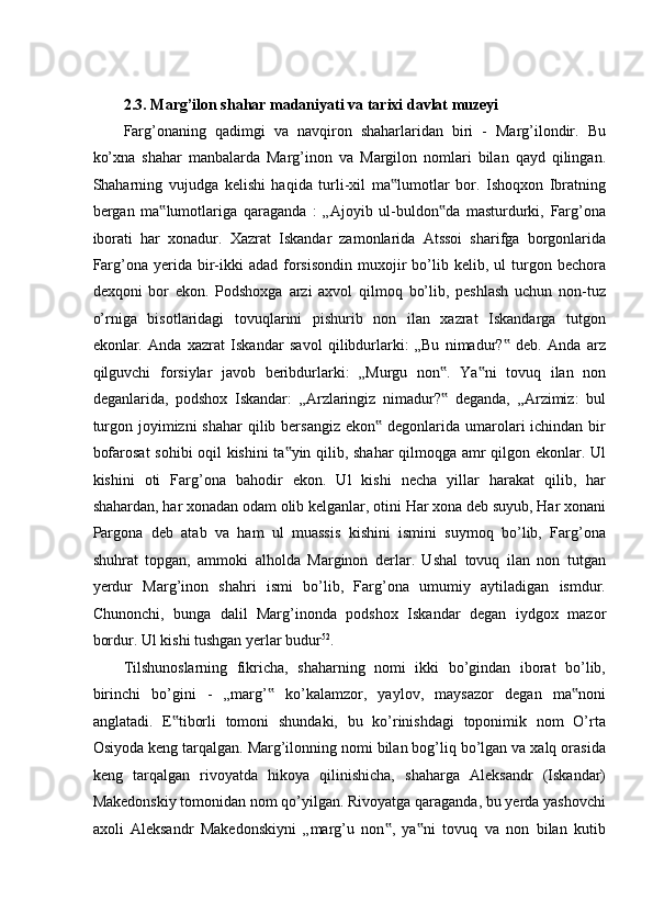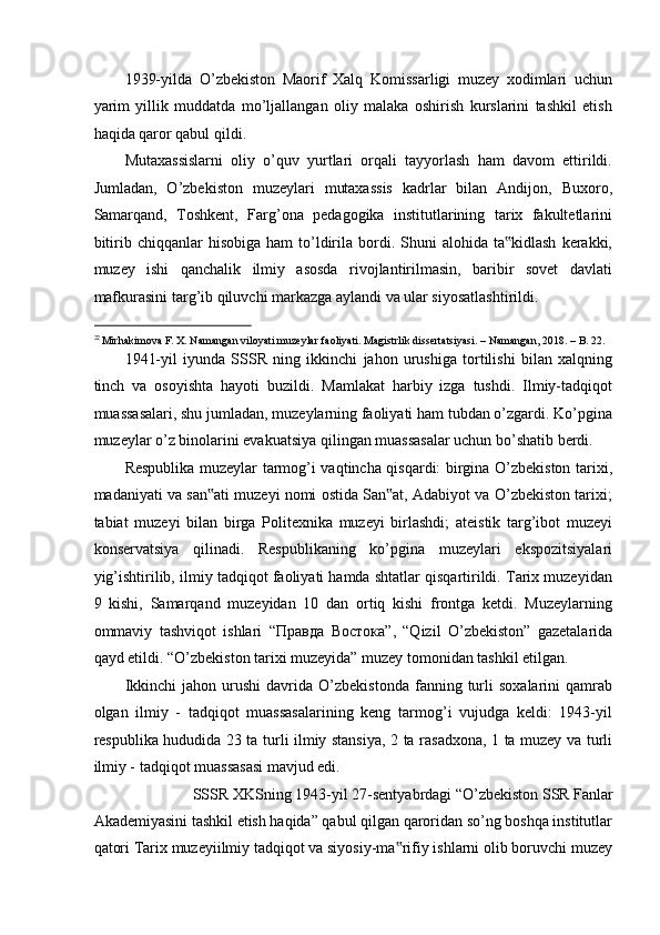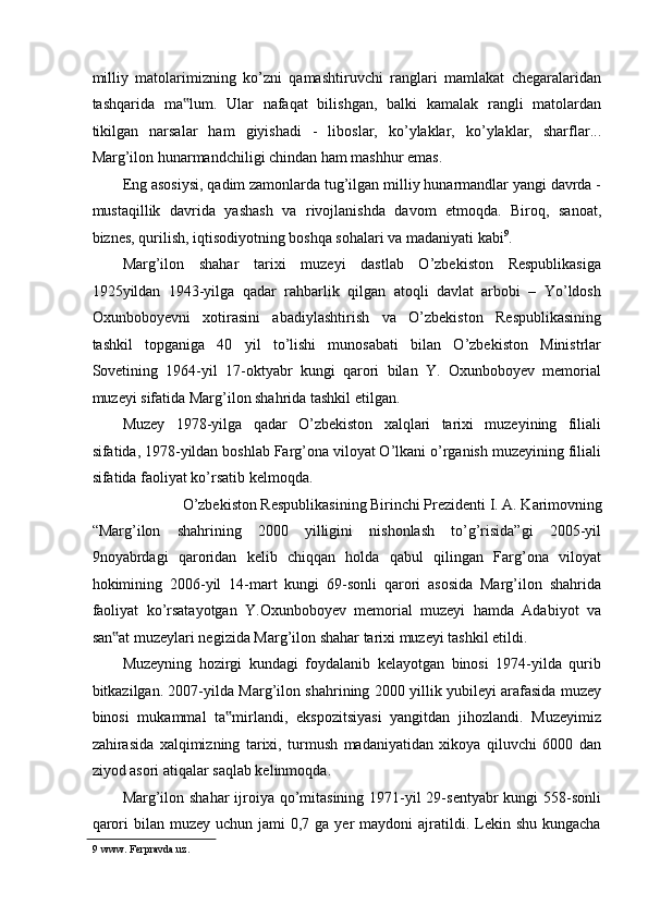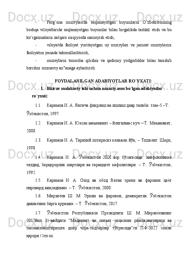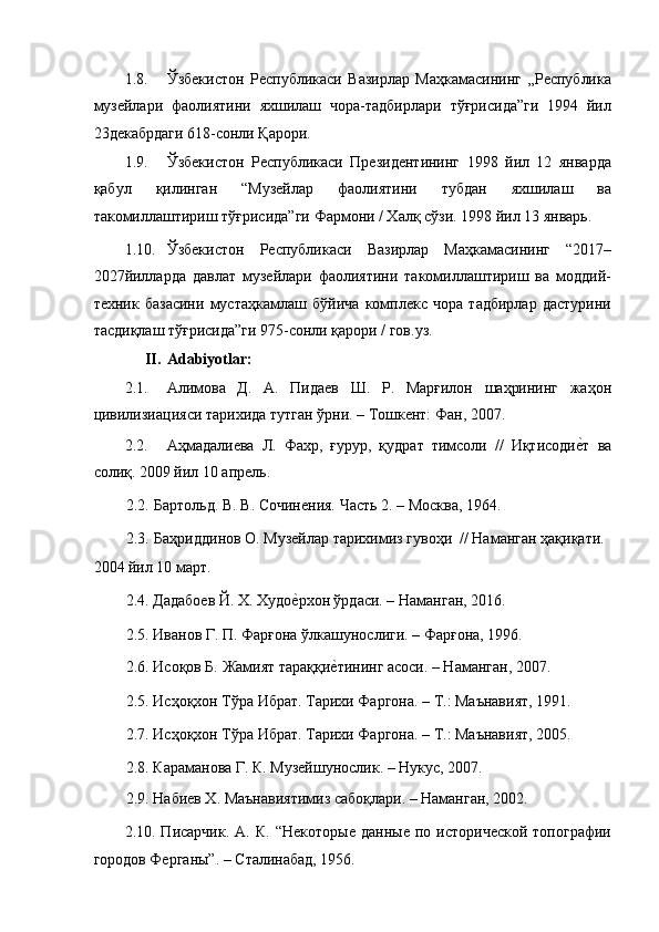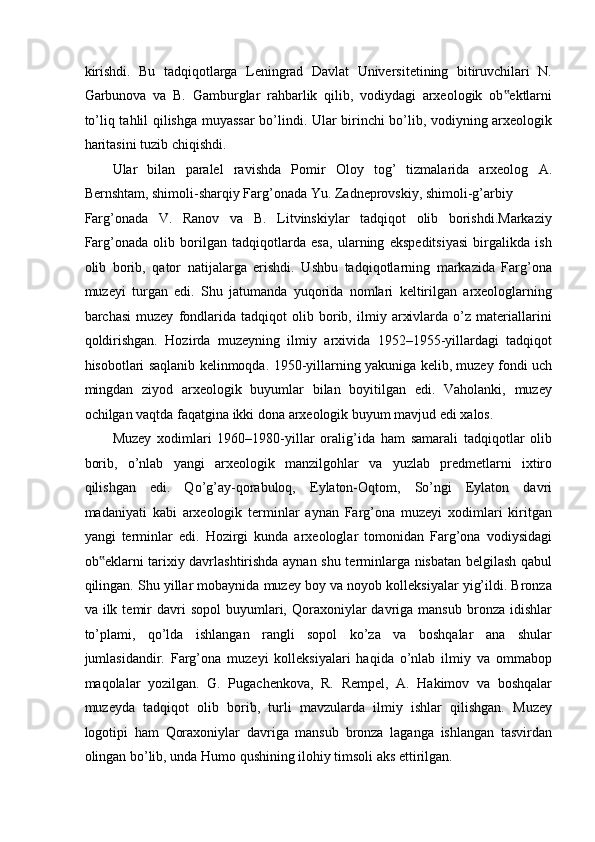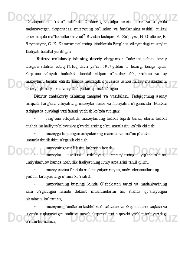 FARG’ONA VILOYATI MUZEYLARI TARIXI