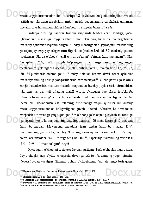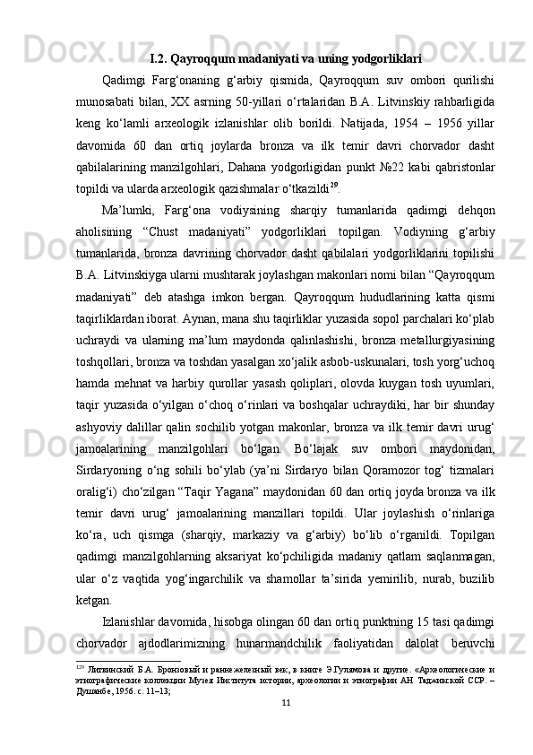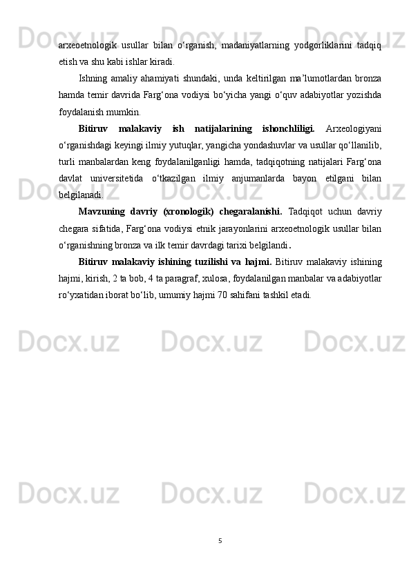 Farg‘ona vodiysi etnik jarayonlarini arxeoetnologik usullar bilan o‘rganish (bronza va ilk temir davri)