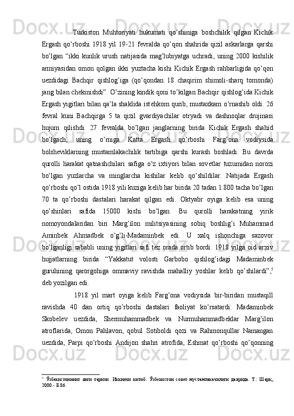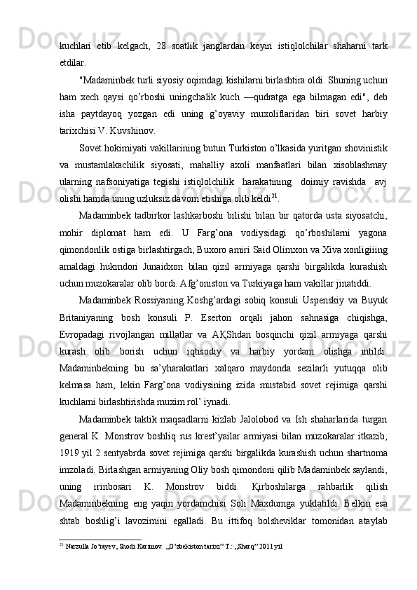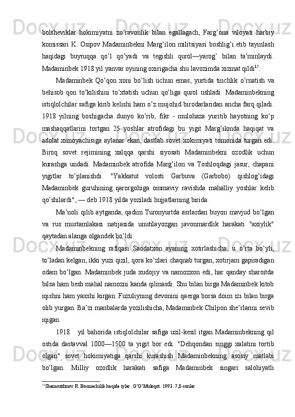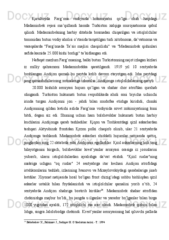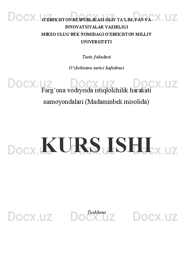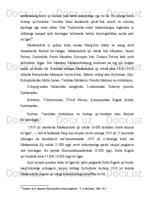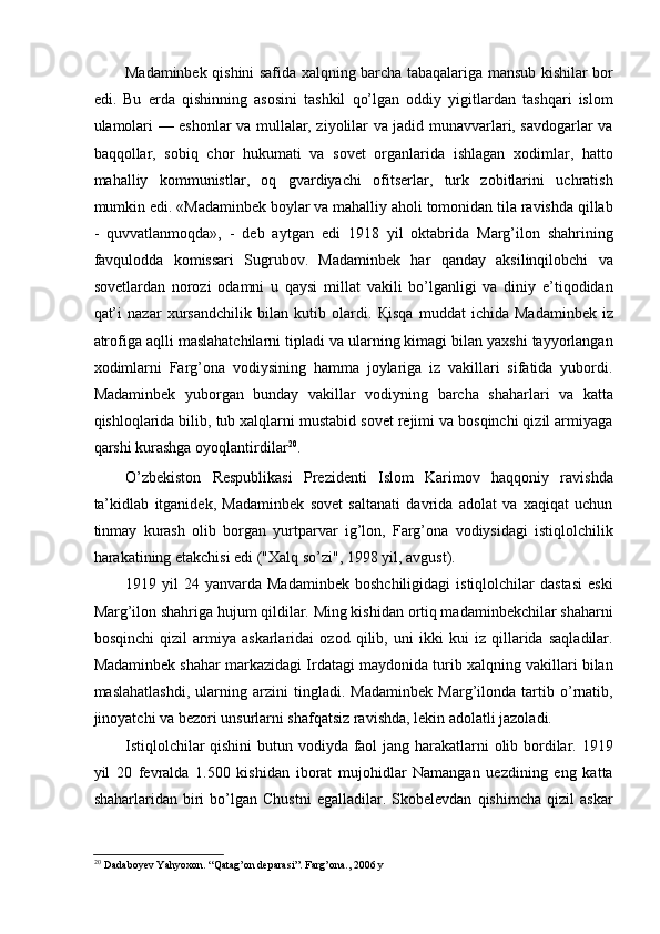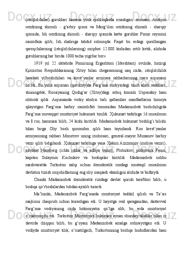 Farg’ona vodiysida istiqlolchilik harakati namoyondalari (Madaminbek misolida)