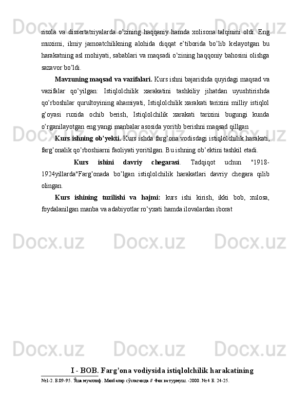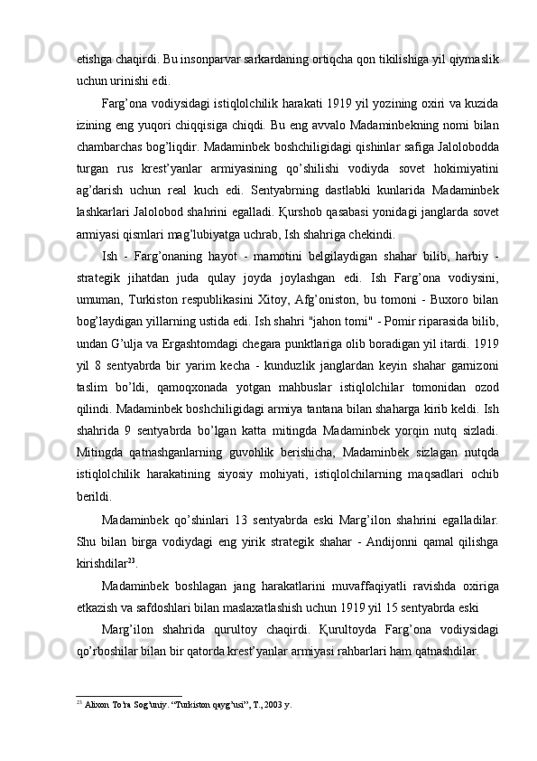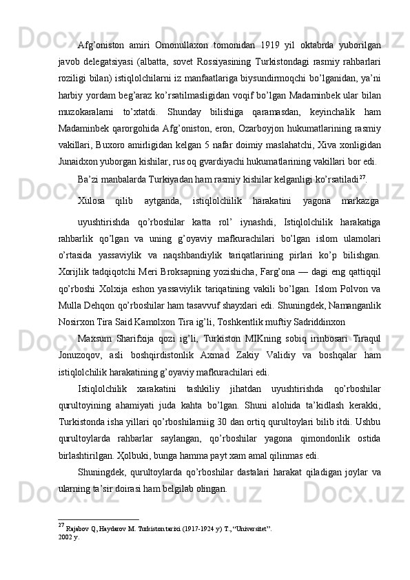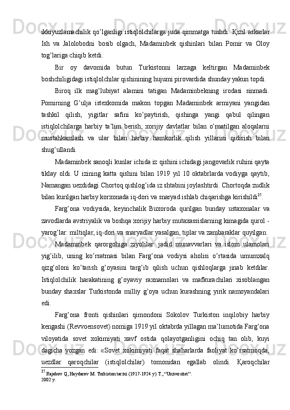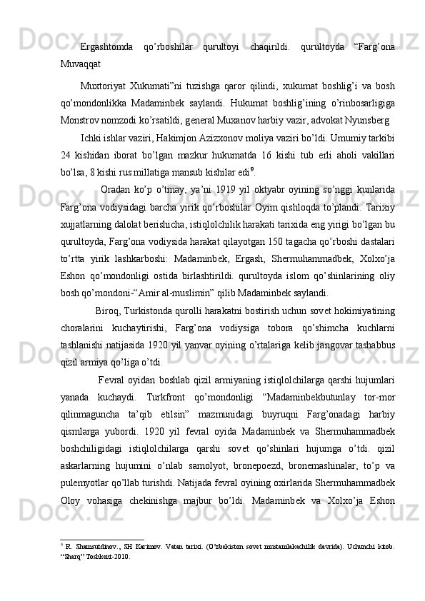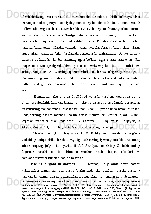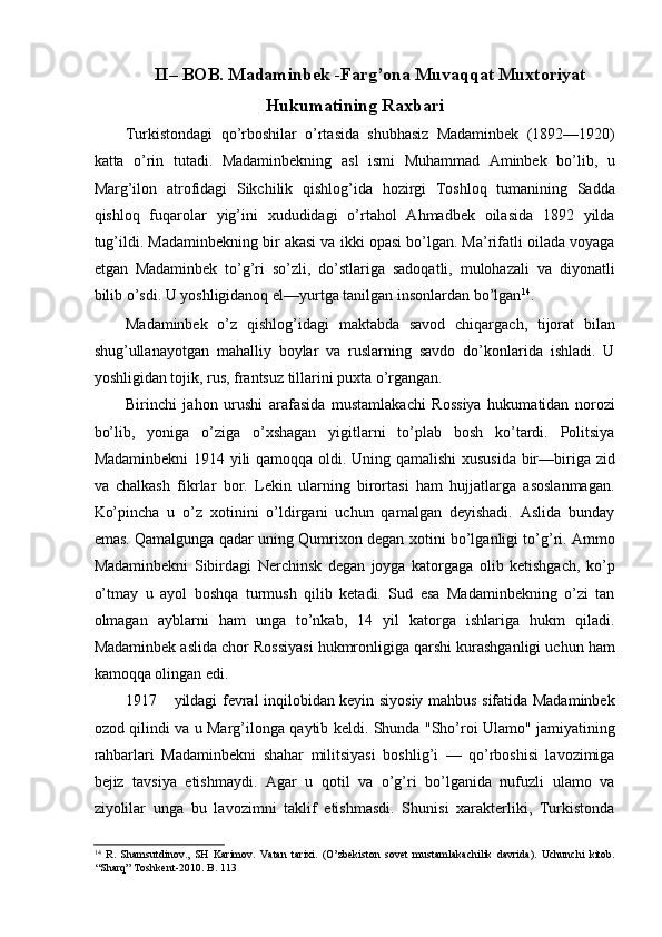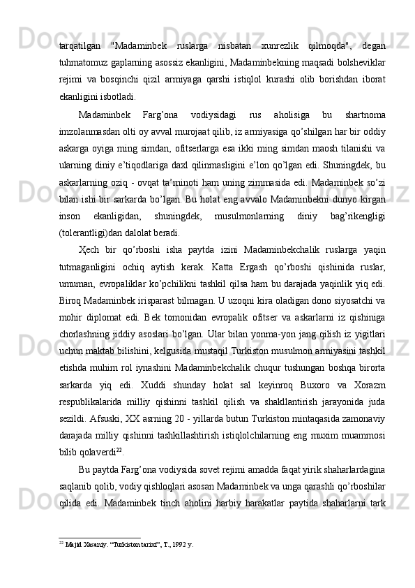 Farg’ona vodiysida istiqlolchilik harakati namoyondalari (Madaminbek misolida)