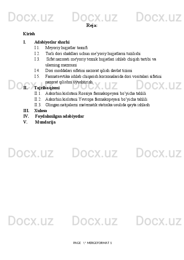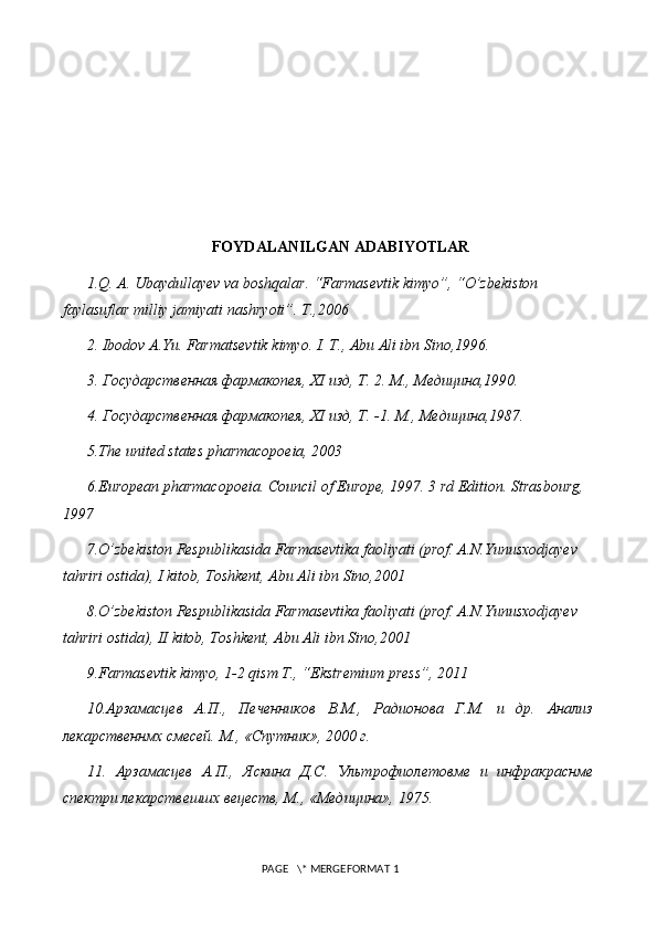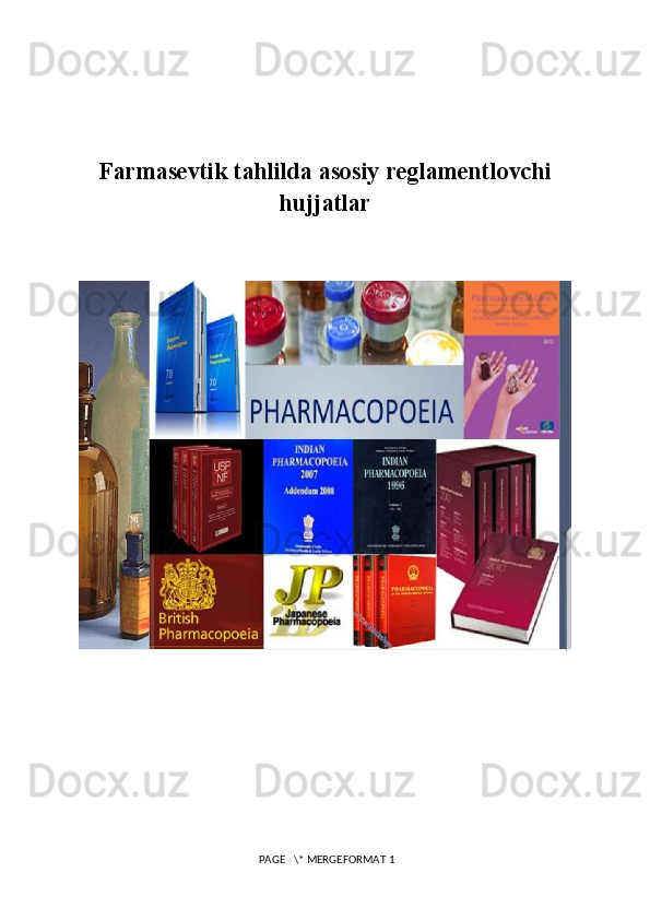 Farmasevtik tahlilda asosiy reglamentlovchi hujjatlar