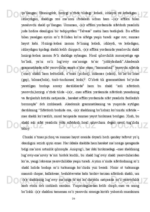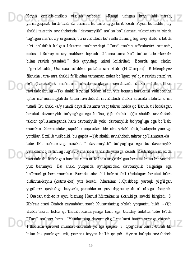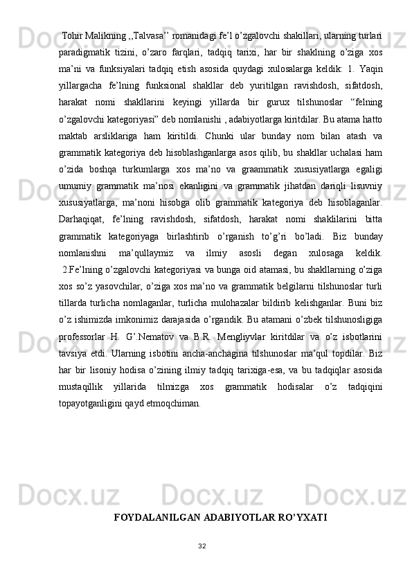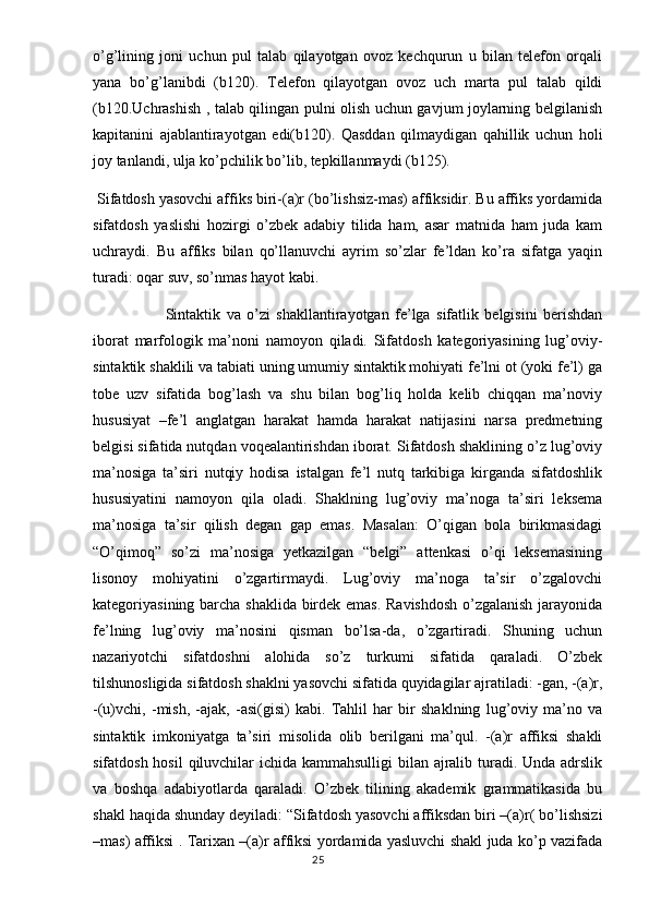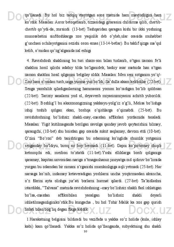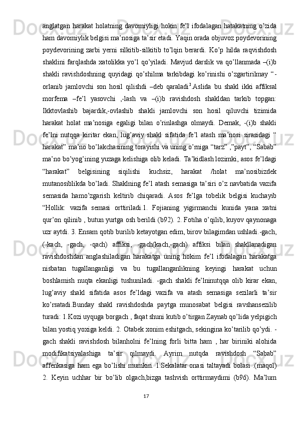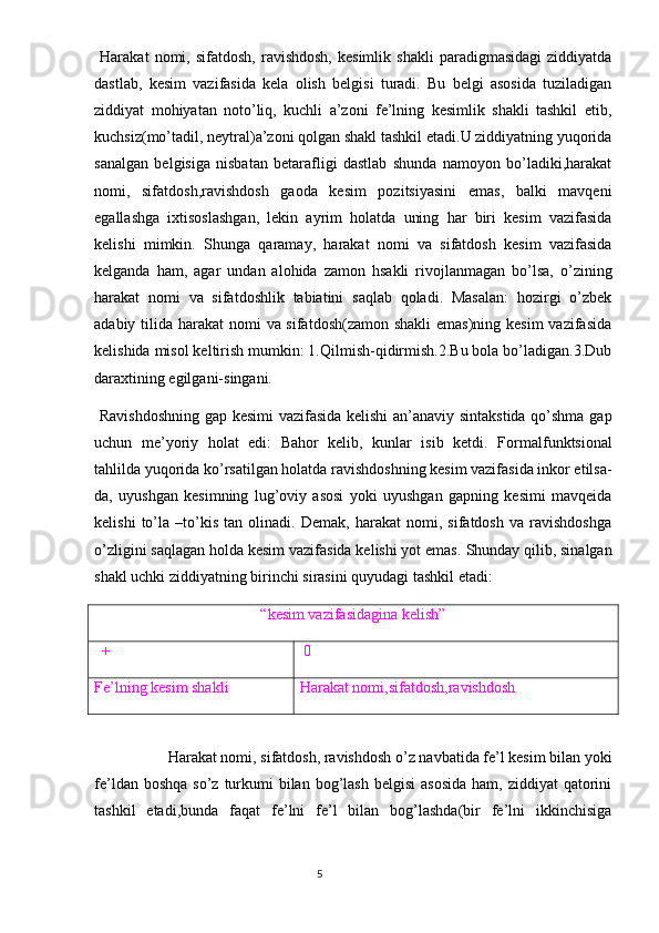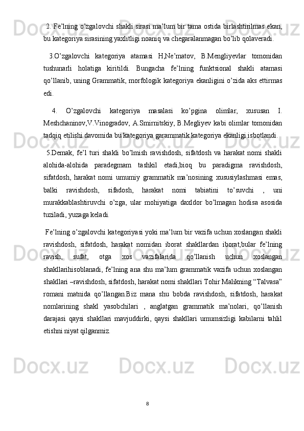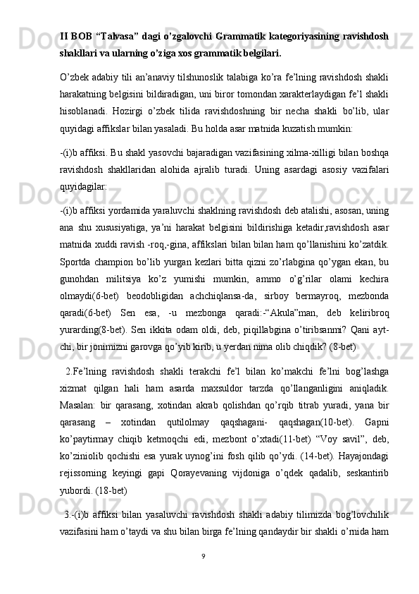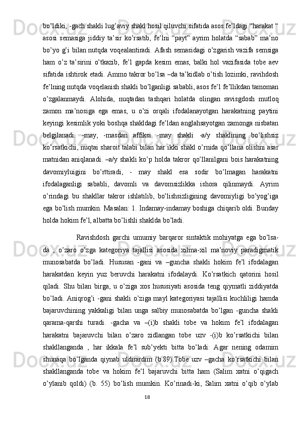 Fe'l o'zgalovchi kategoriyasi shakllarining uslubiy xoslanishi