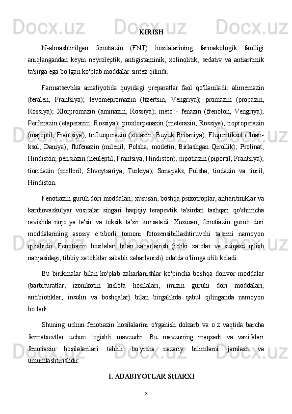 Fenotiazinlar tahlili. Alkil va atsil-xosilalari