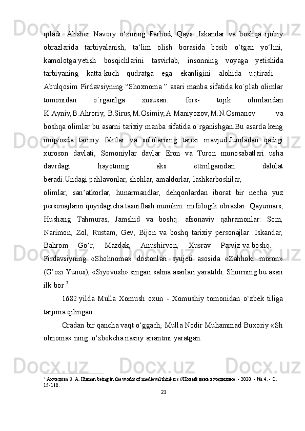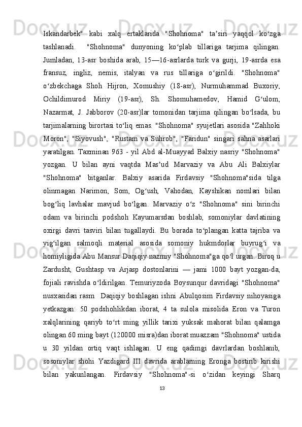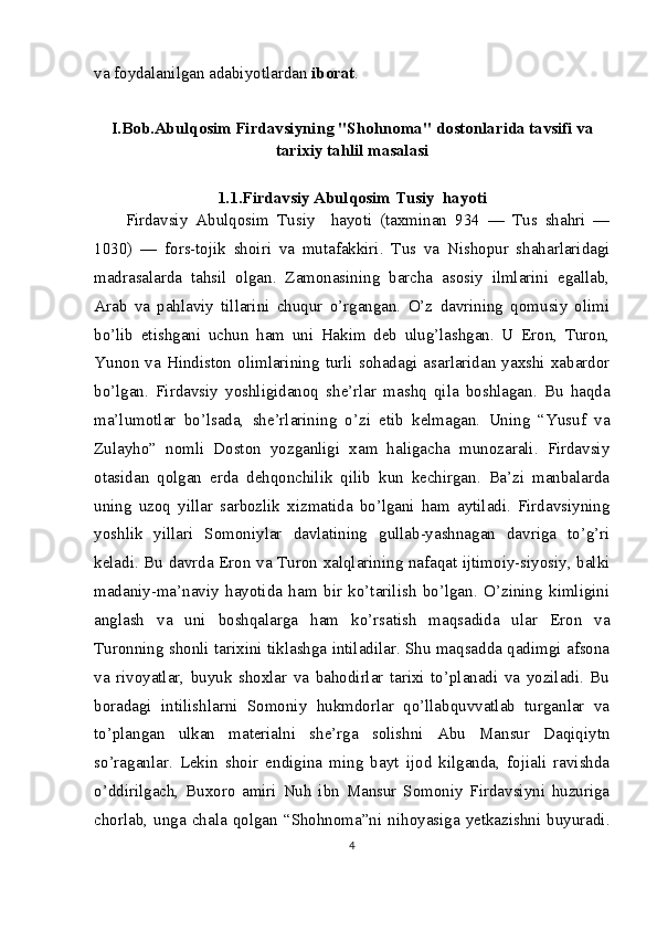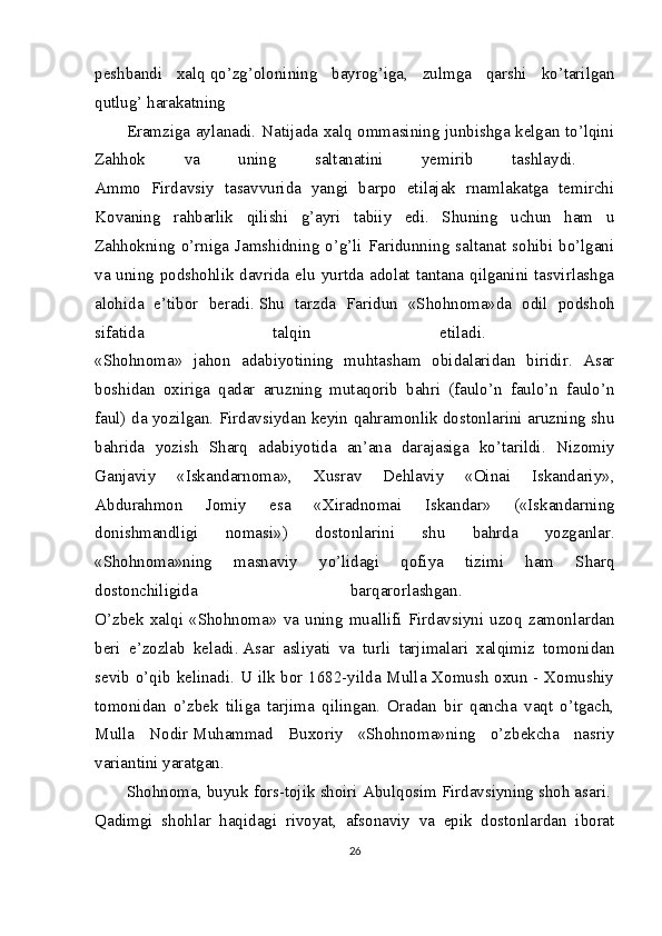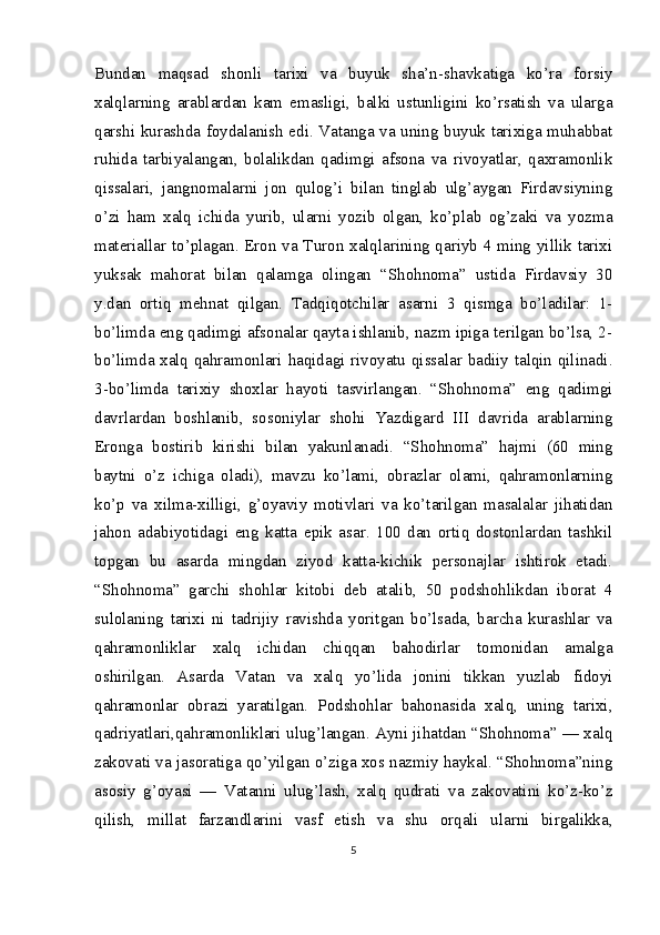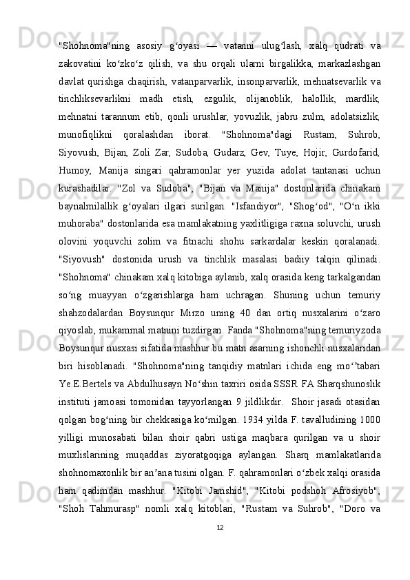 Firdavsiyning “Shоhnоmа” asarlari tarixiy manba sifatida