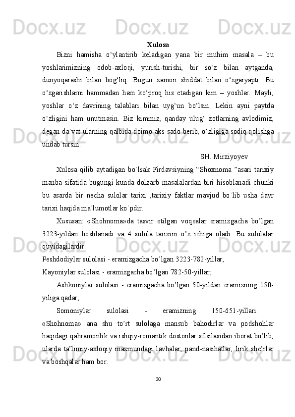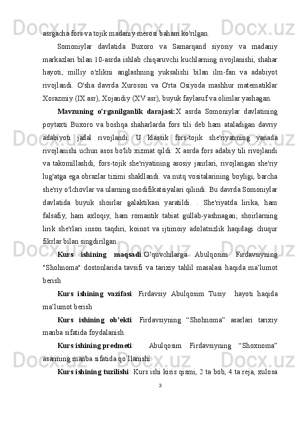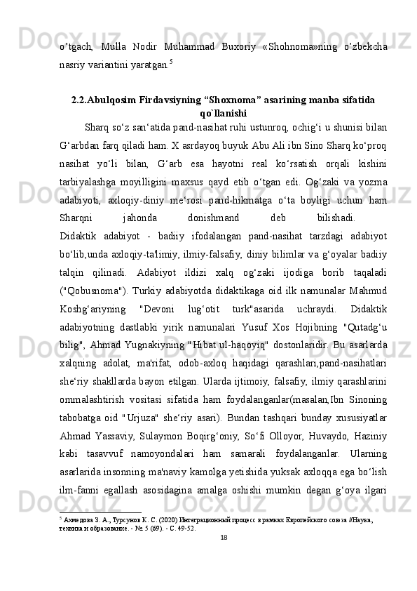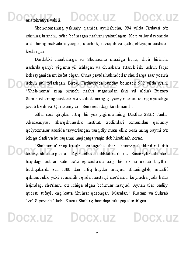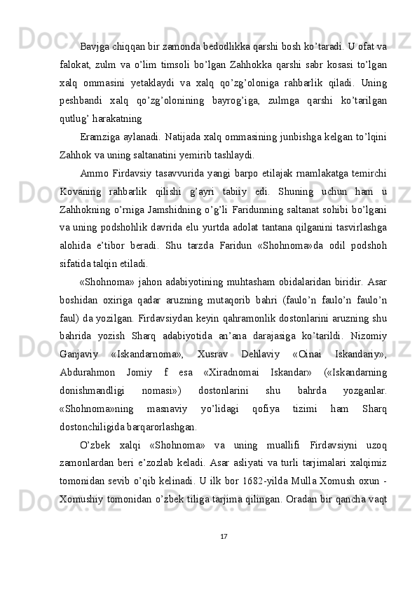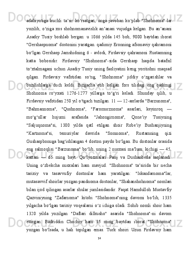 Firdavsiyning “Shоhnоmа” asarlari tarixiy manba sifatida