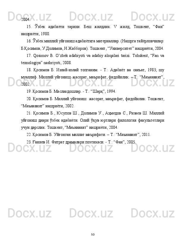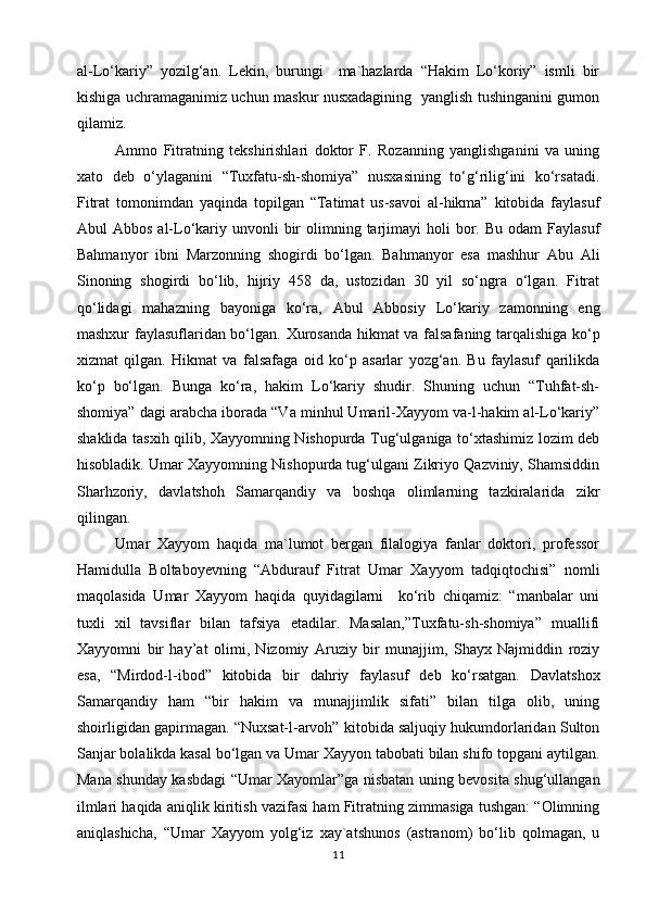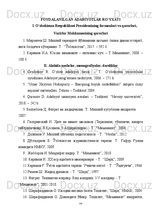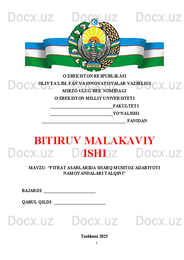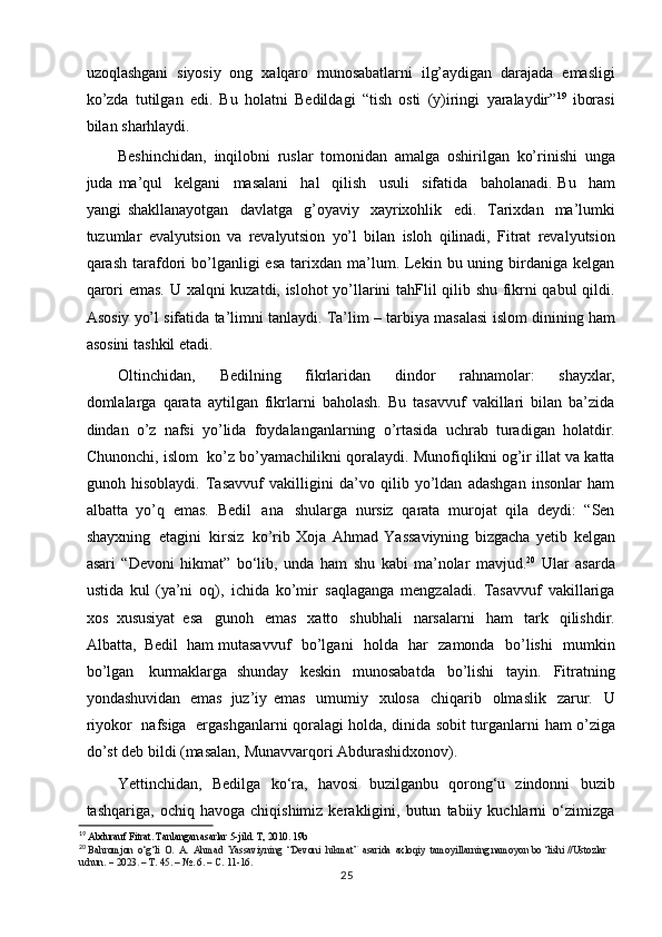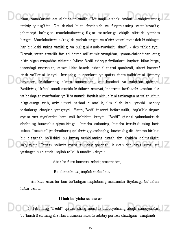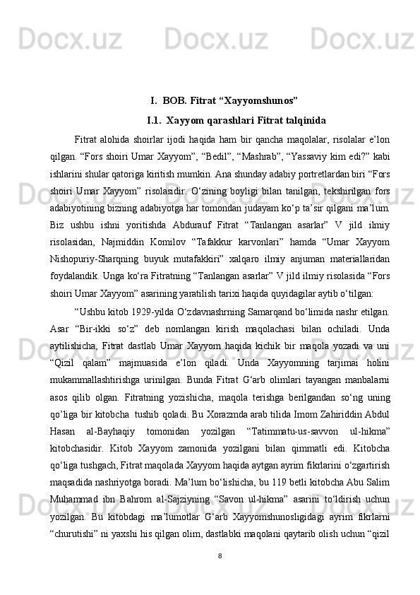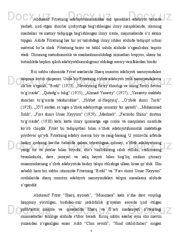 Fitrat asarlarida sharq mumtoz adabiyoti namoyandalari talqini