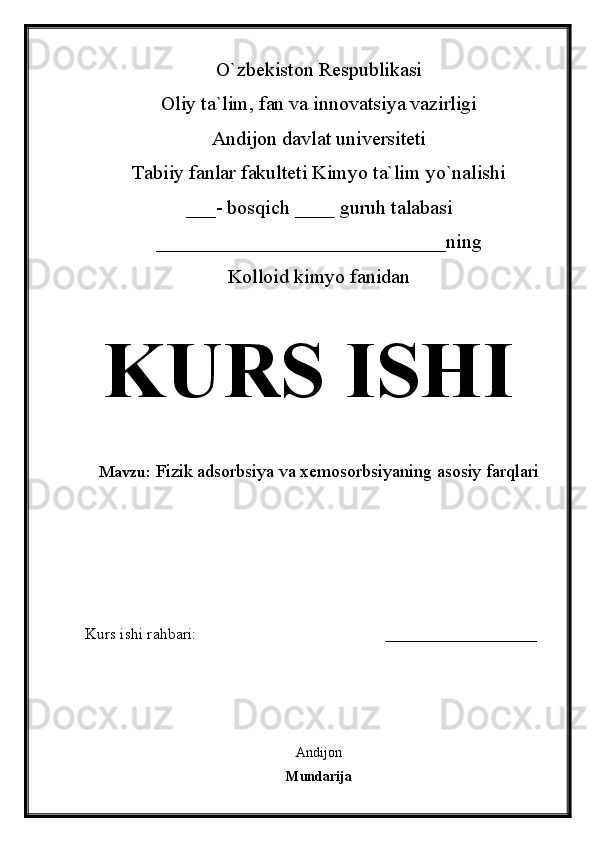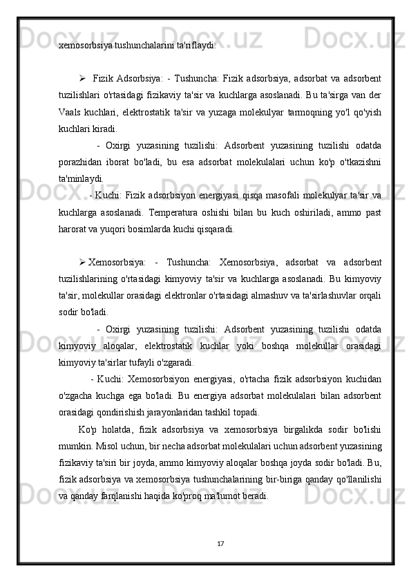 Fizik adsorbsiya va xemosorbsiyaning asosiy farqlari