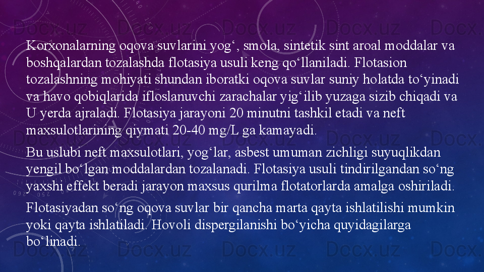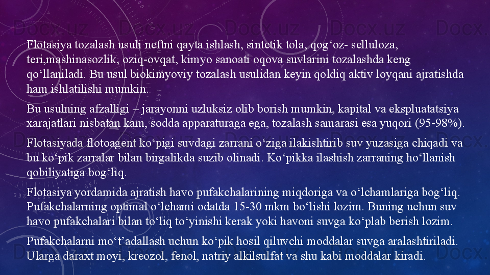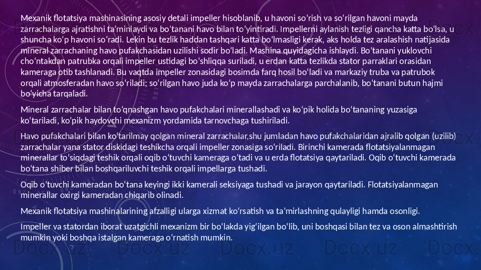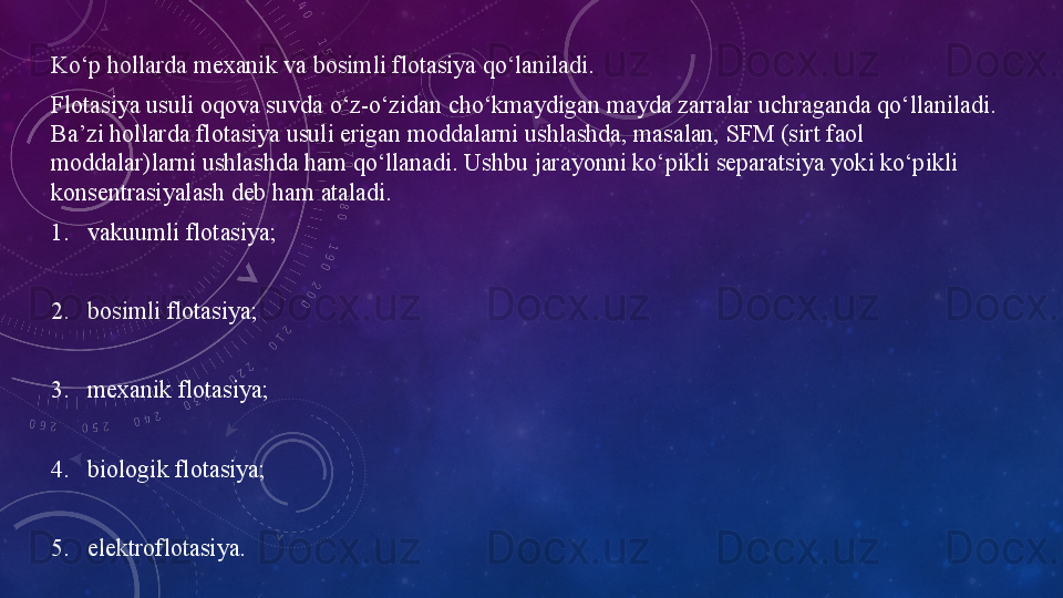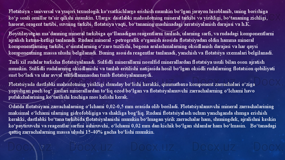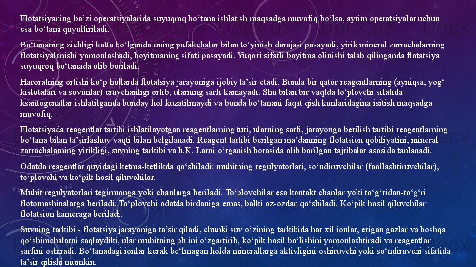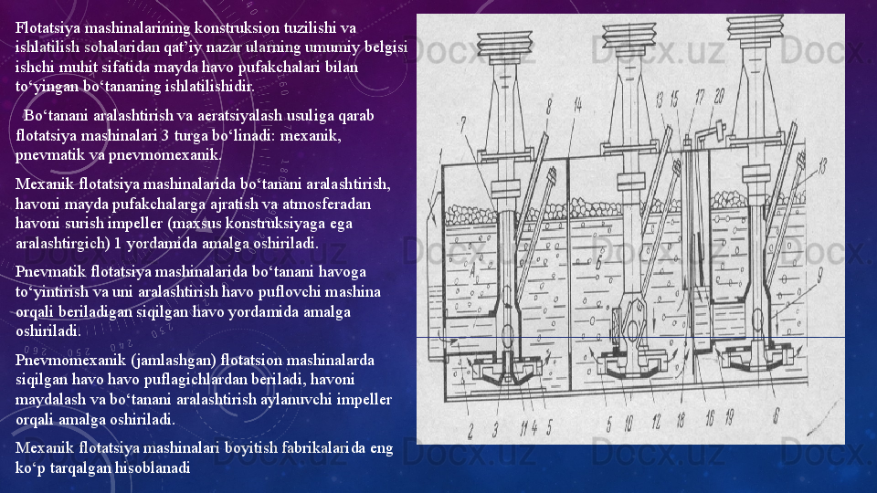 Flotatsion qurilmalar qo’llanilishi, jarayoni uchun tanlanishi